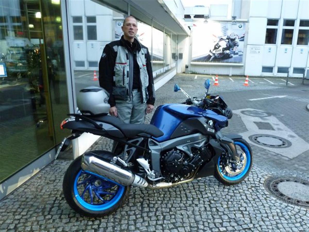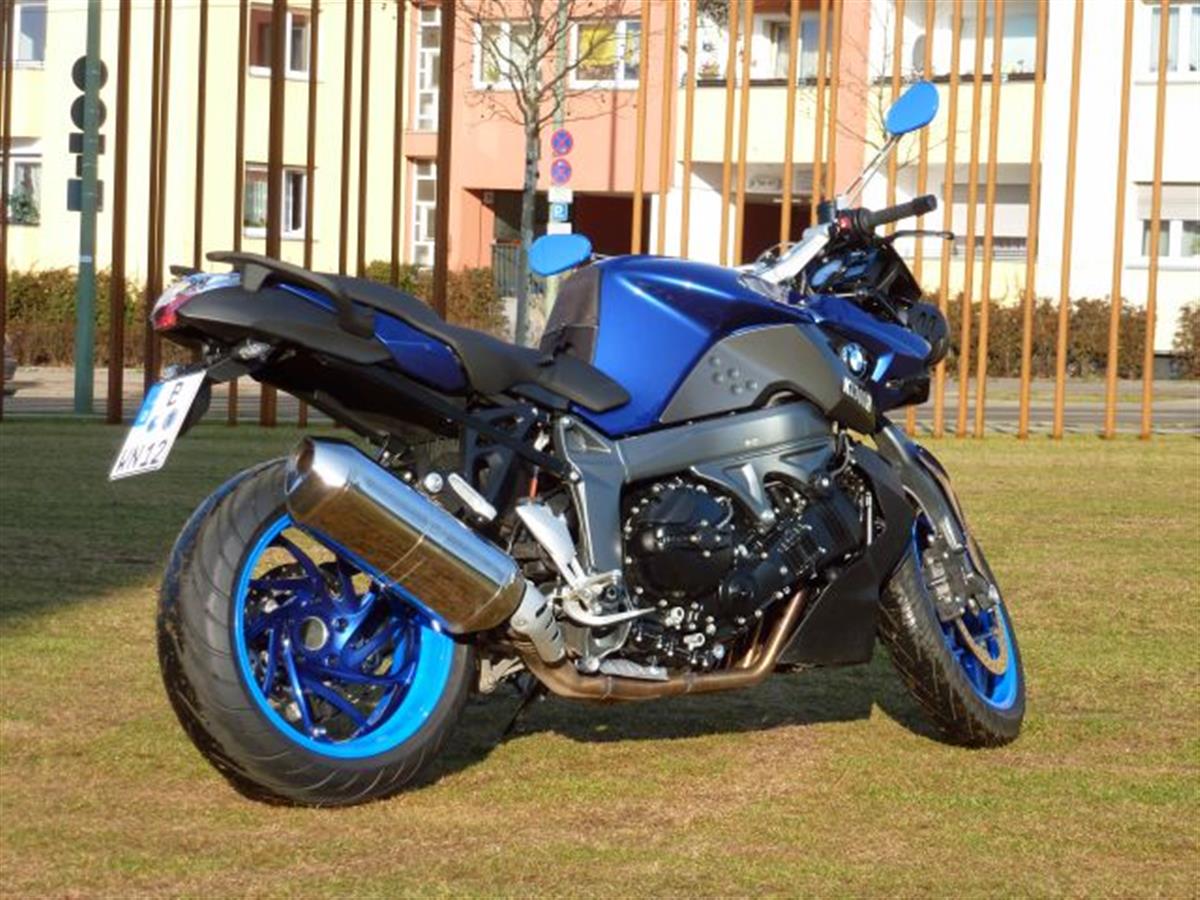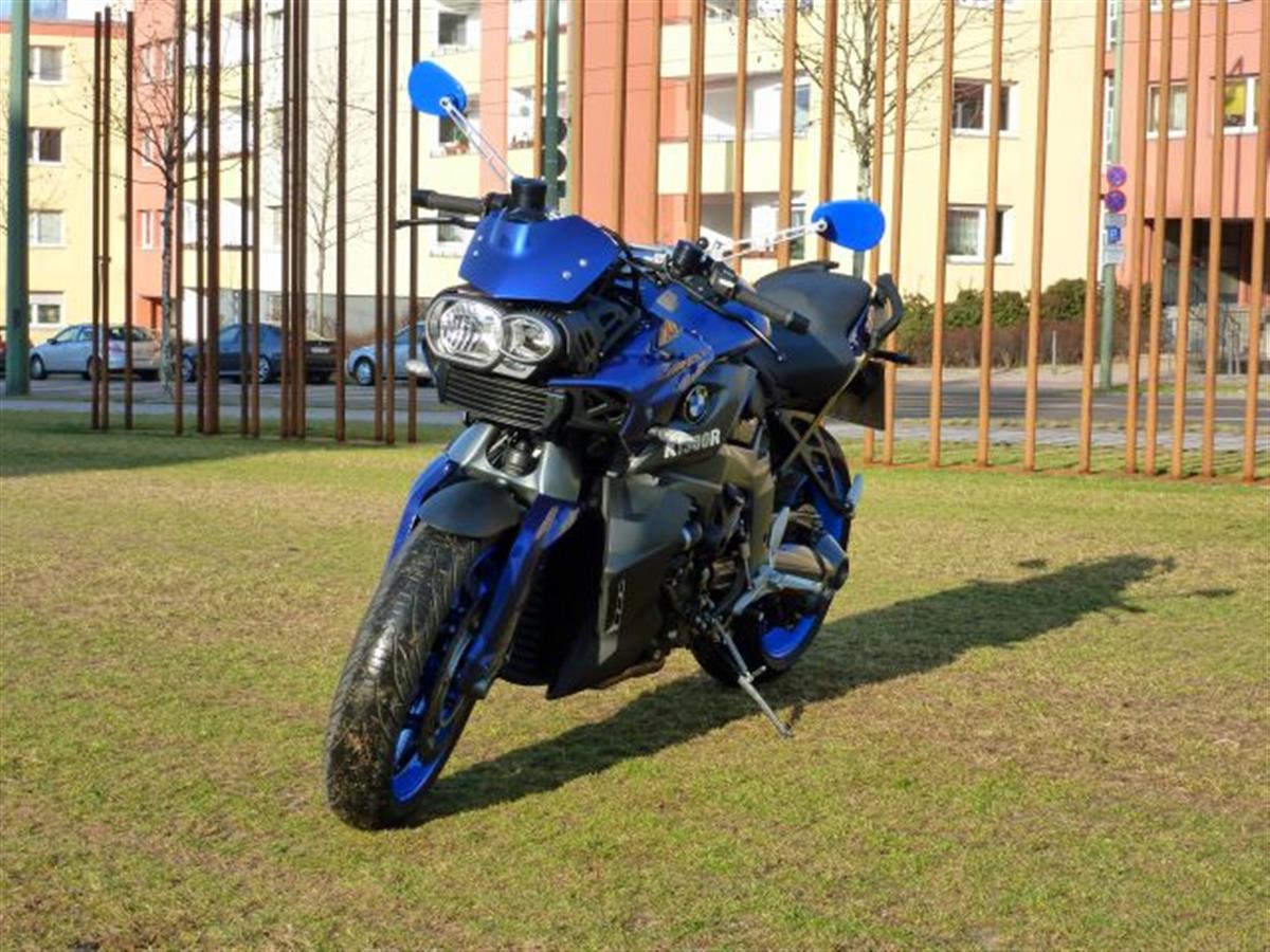 The fourth K. BMW did not manage to develop a new new interesting bike for me yet. So I had to stick to the K1300R. Again in blue. This time I combined two shades of blue: A decent dark blue BMW Montego blue metallic and a loud flashy glowing blue. I like it. And I like the mirrors painted in glowing blue.