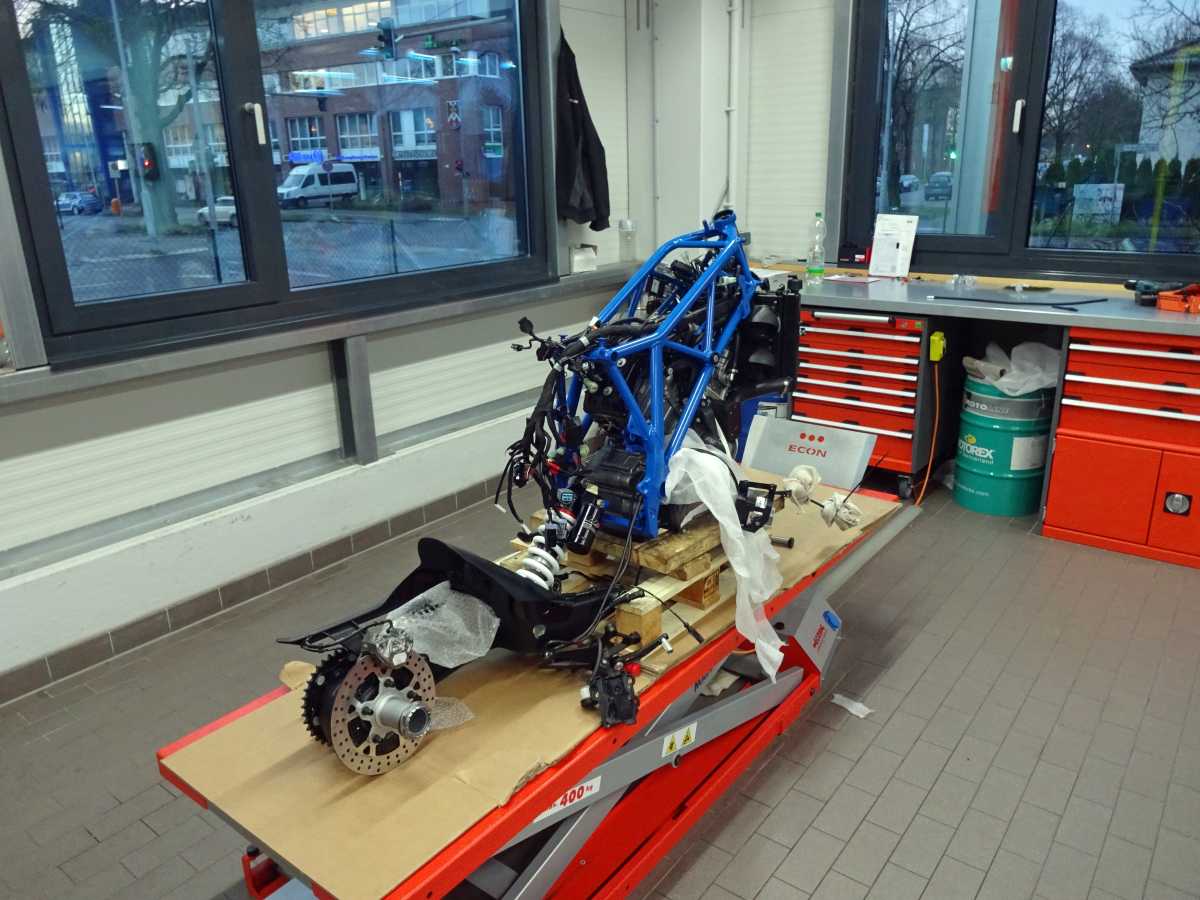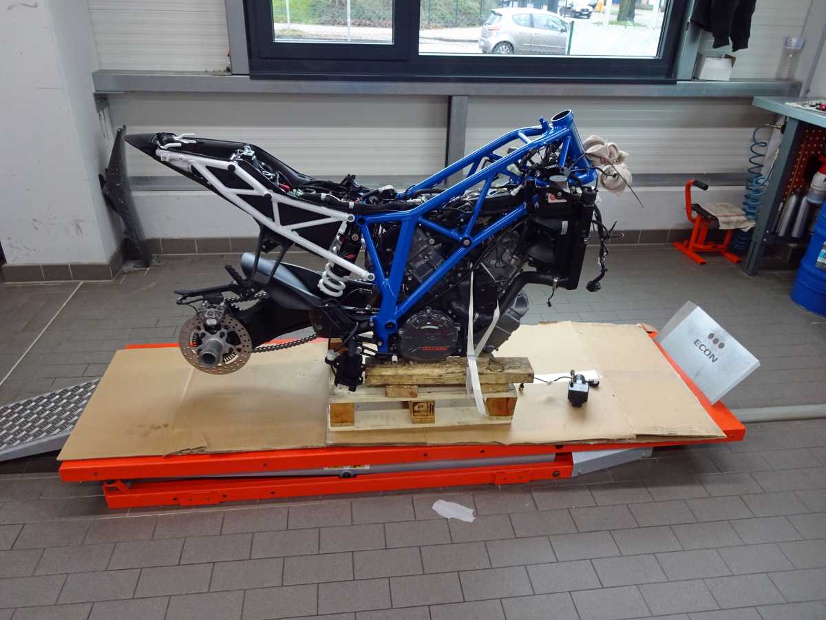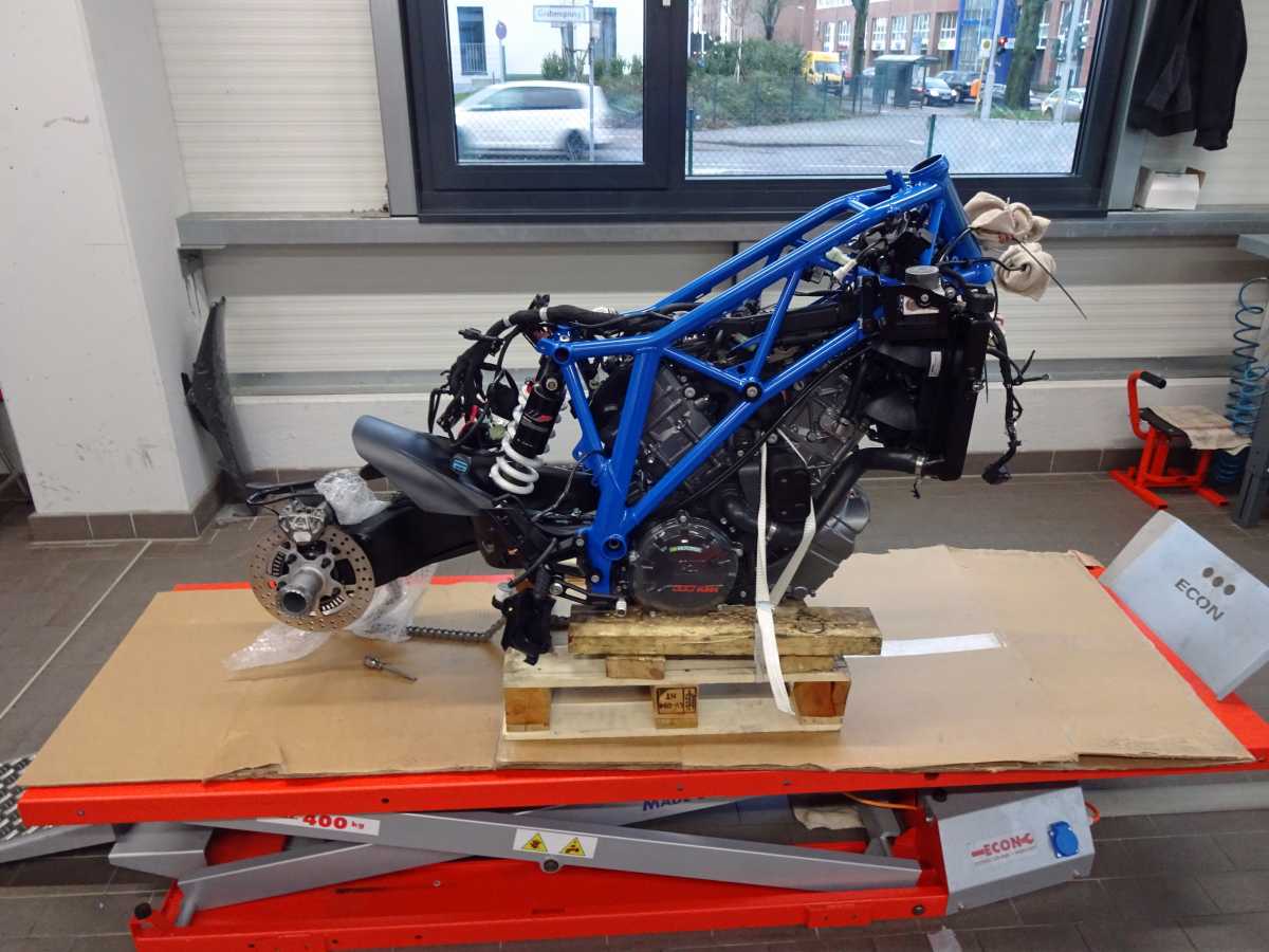 Find here some pictures of the conversion of my bike. The orange color was to be replaced by a nice combination of white and blue.