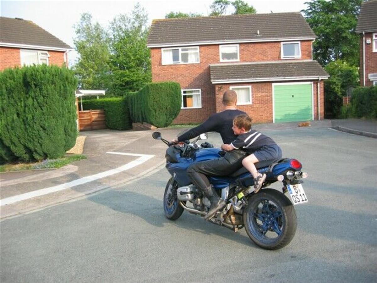In the evening then the highlight for Benjamin. First he dared to get onto the bike and then he even got a little lift.