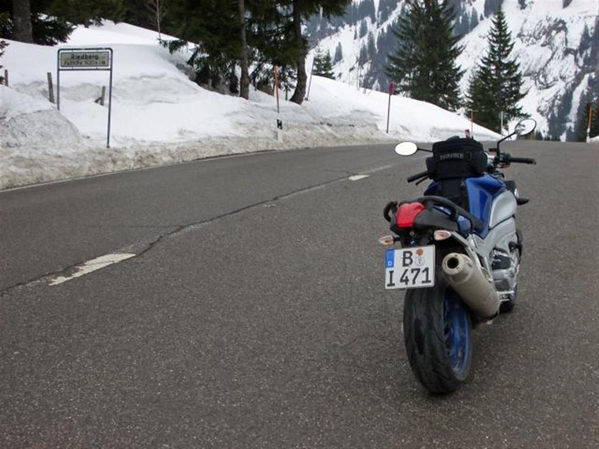 Short break at Riedbergpass. Snow is still there. We are at 4656 ft above sea level