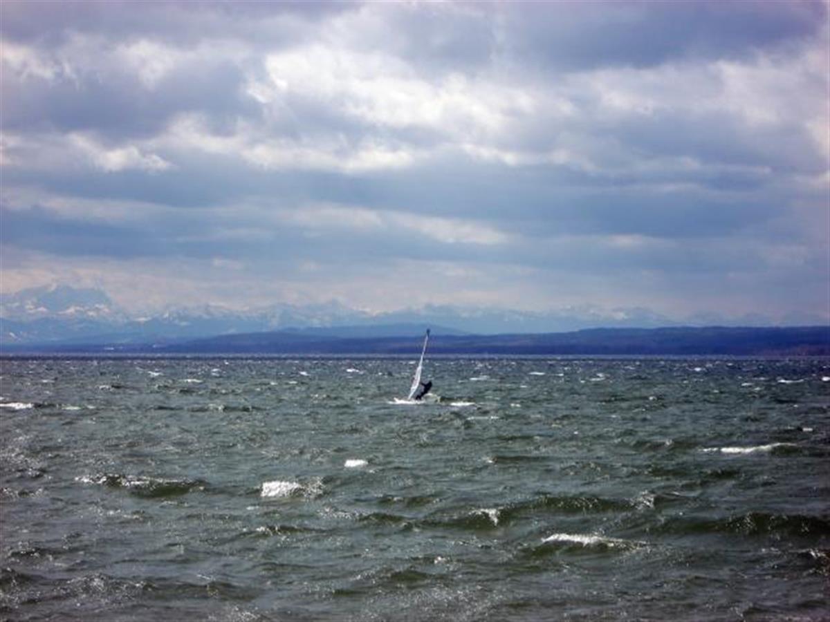 Heavy wind on the northern waterfront of Ammersee. A little surfer's paradise.