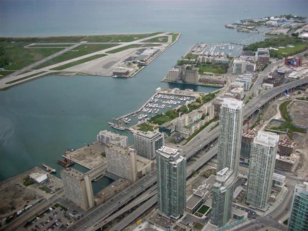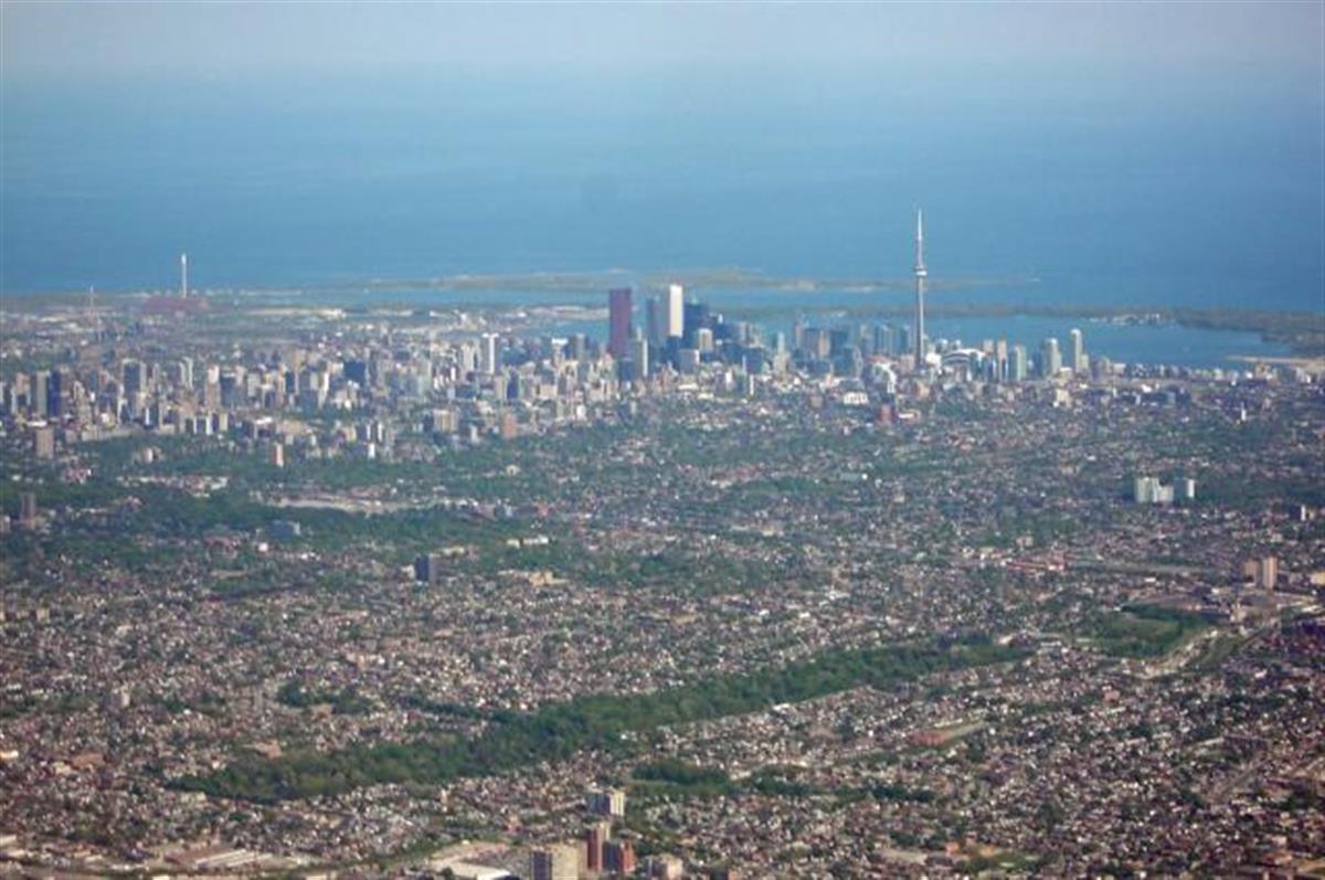 View to Toronto with Lake Ontario behind it. The lake has about half the size of the Baltic Sea