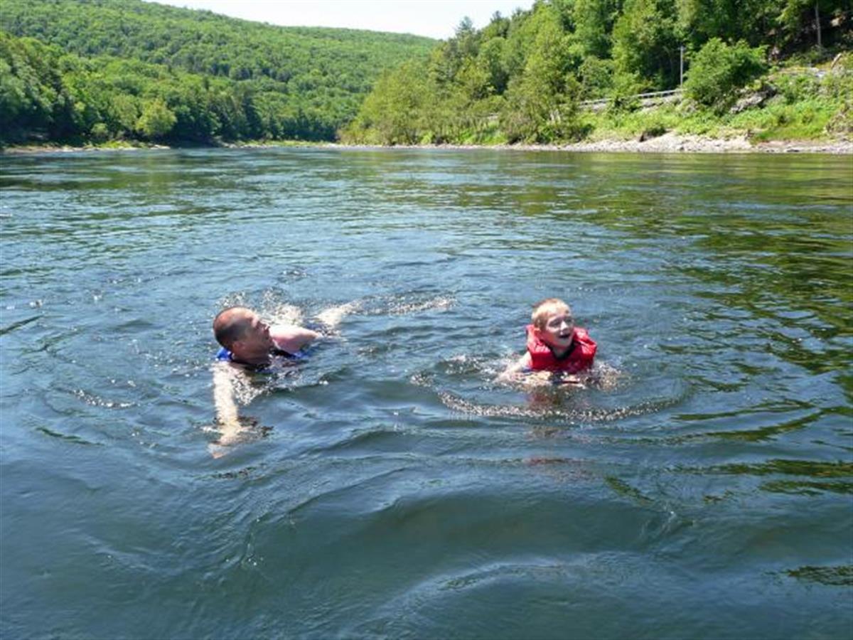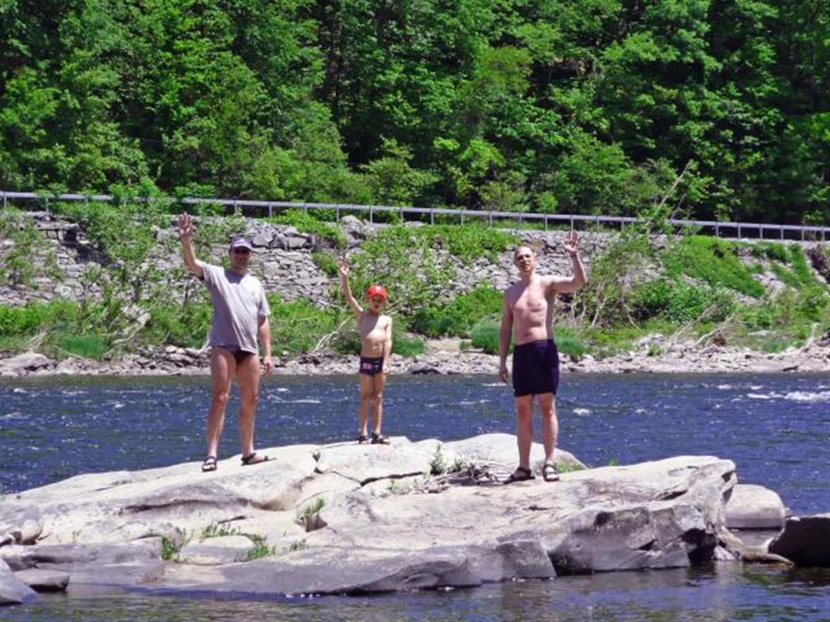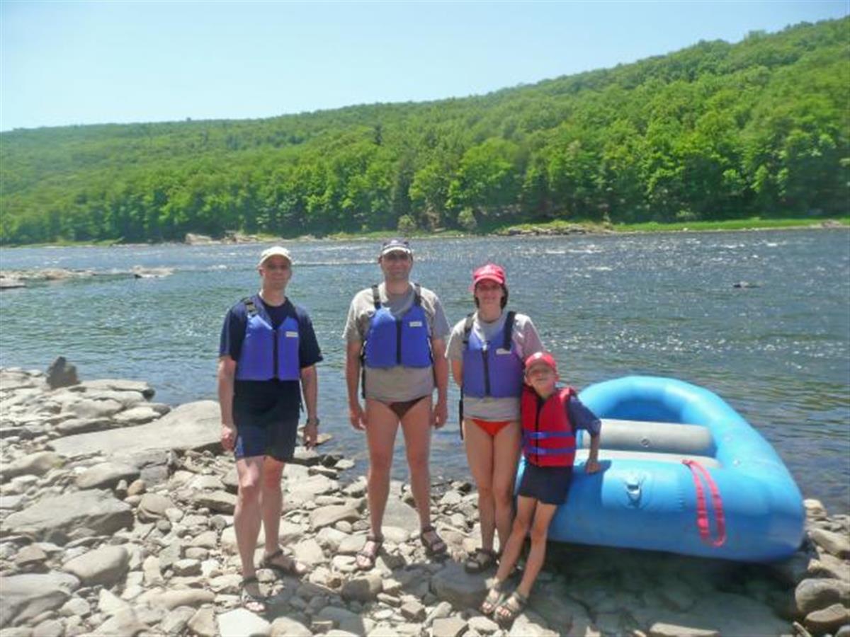 This day is for active relaxation. We go to the Delaware river for a rafting tour. The river is calm and the water temperature is about 70 F. We have six hours and we have a picknick with us.