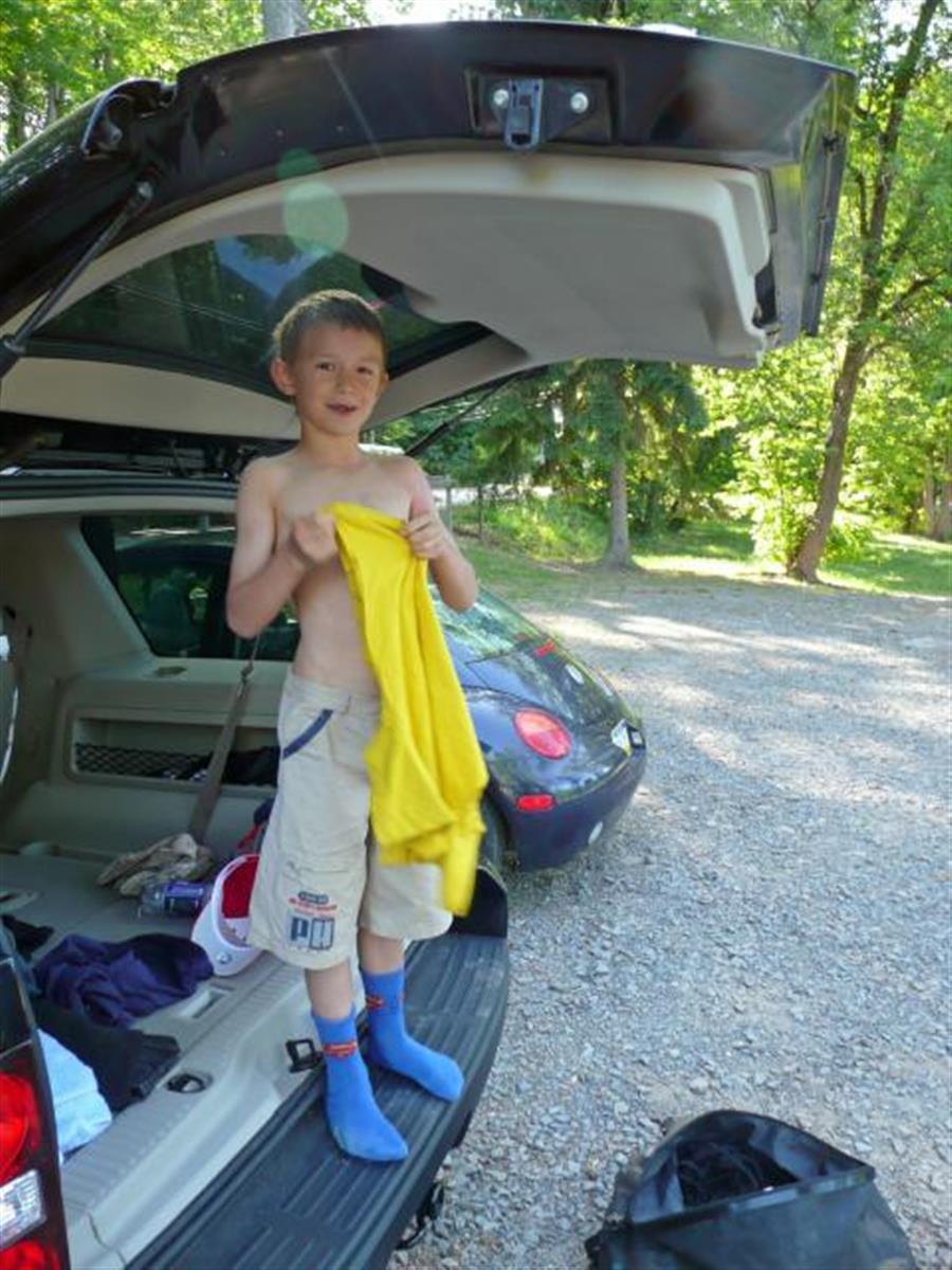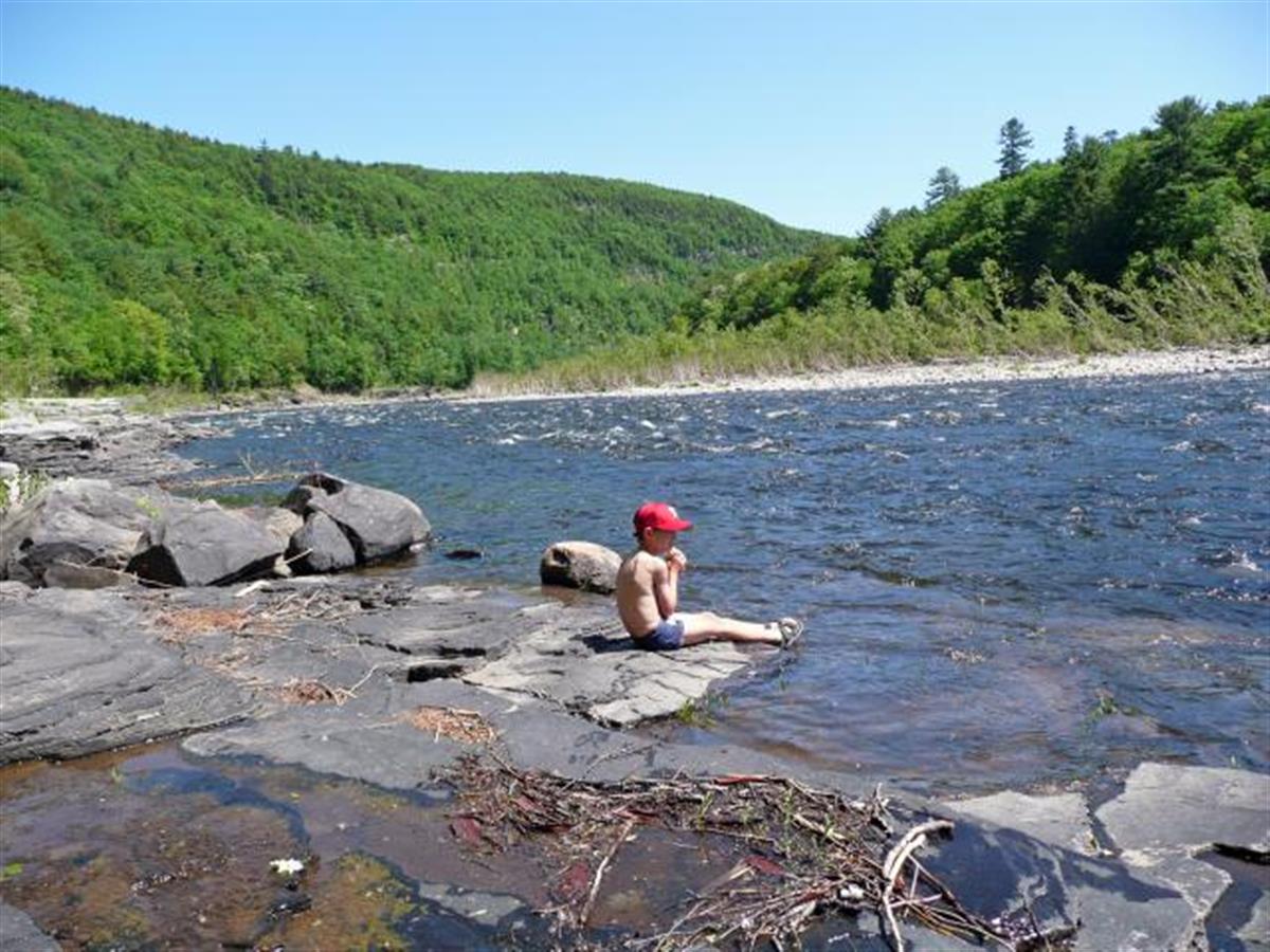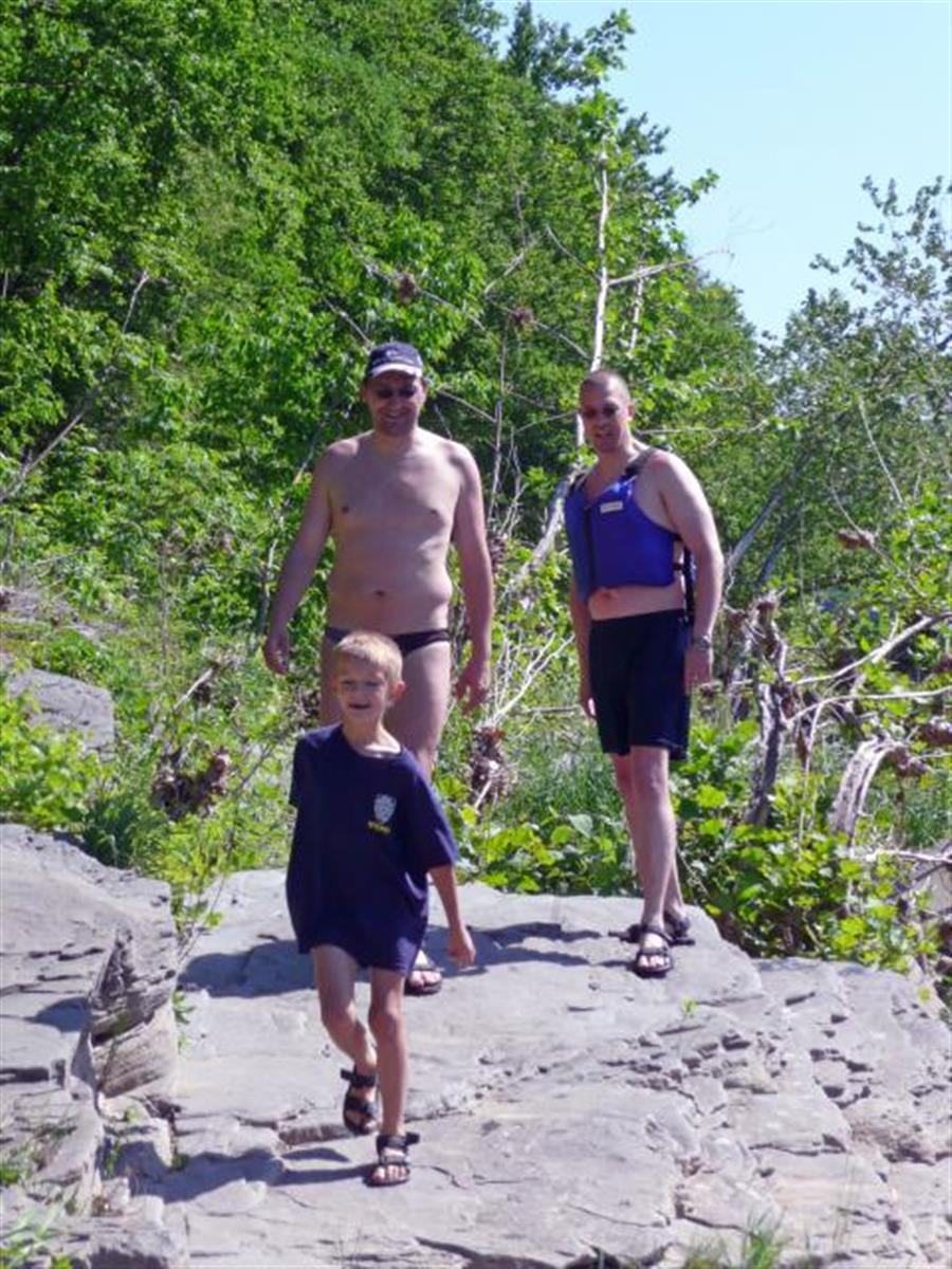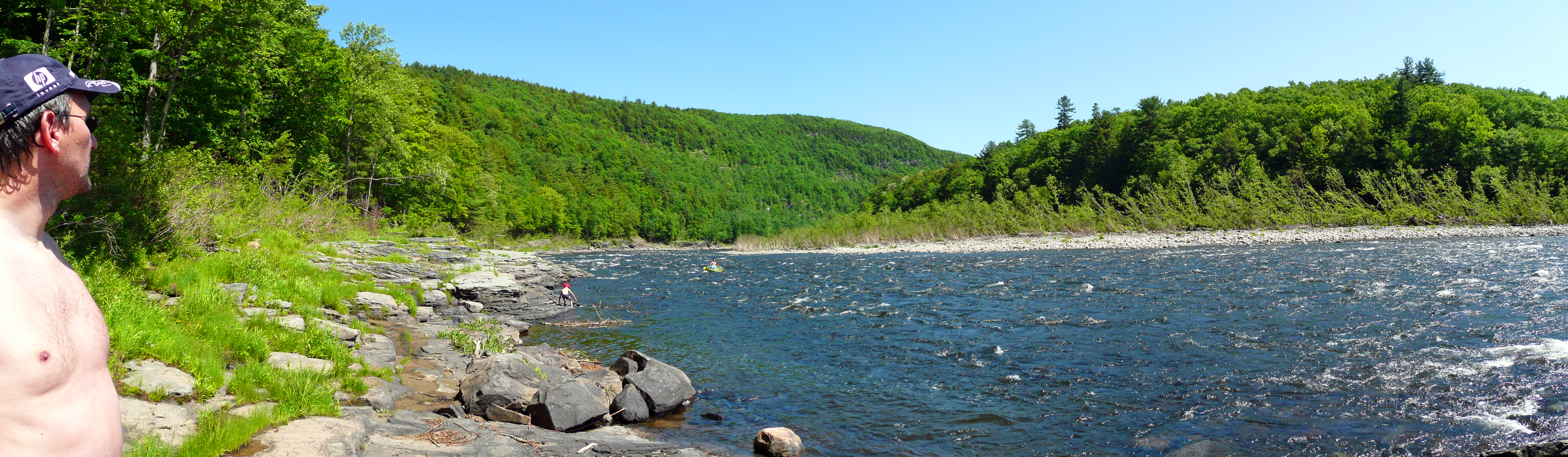 This day is for active relaxation. We go to the Delaware river for a rafting tour. The river is calm and the water temperature is about 70 F. We have six hours and we have a picknick with us.