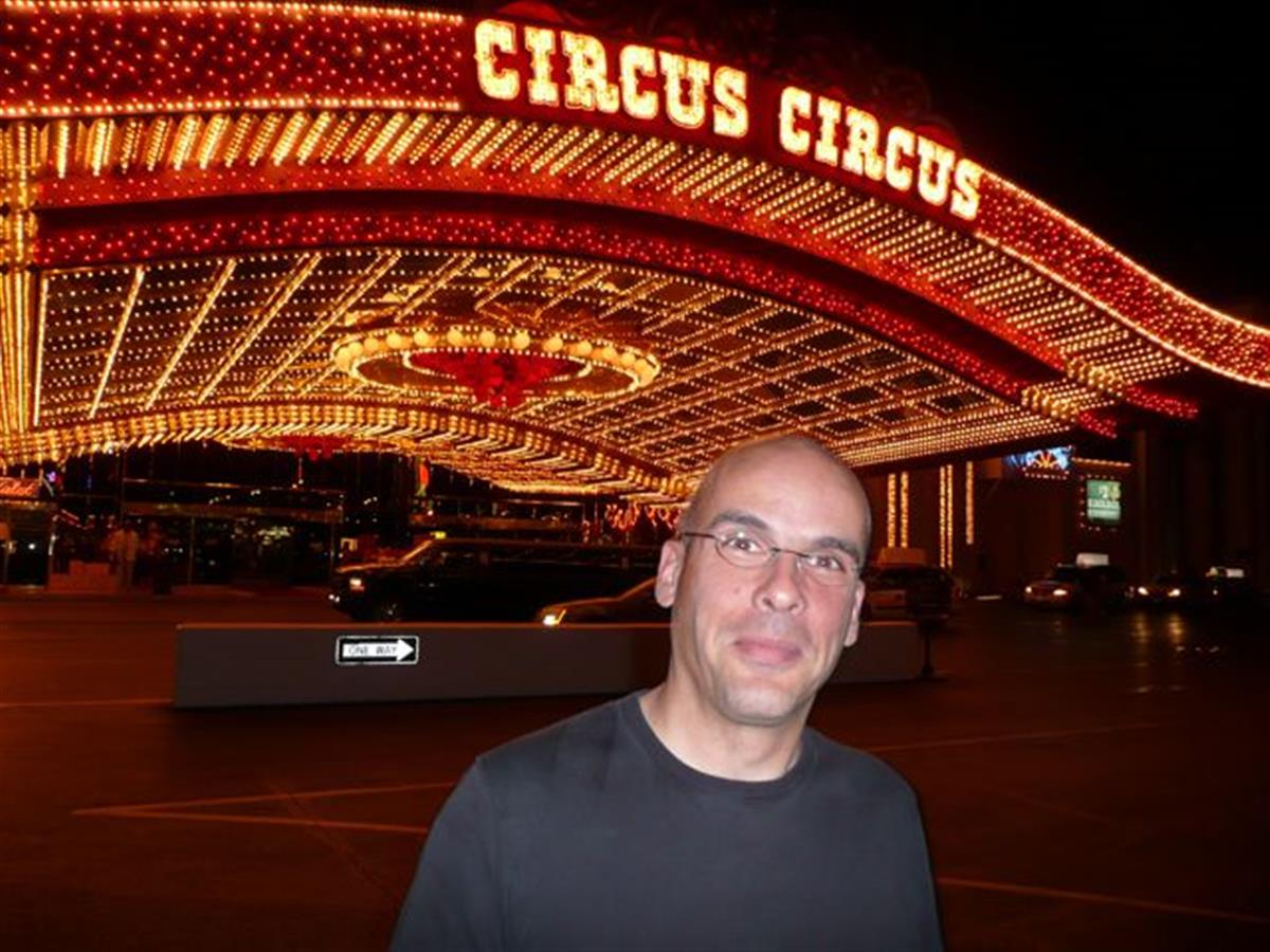 We arrive at our Hotel Circus Circus in Las Vegas at about midnight on Friday. The Hotels are basically casinos with stacks of rooms attached to them. Outside and inside a lot of colored lights.