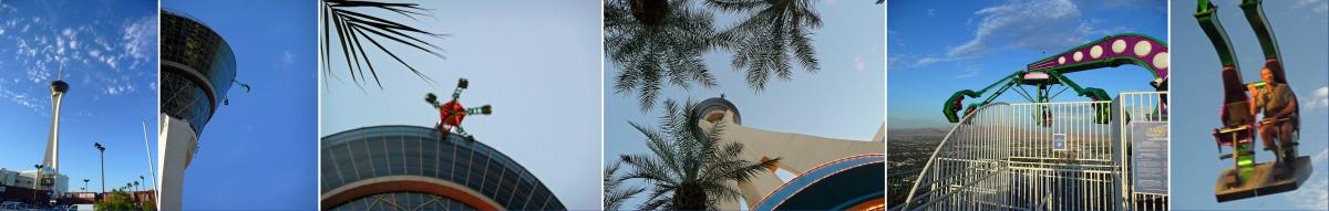 At the end we get back the whole strip and to the Stratosphere. On top of the Tower (1,149 ft) are some thrill rides. I try Insanity. While riding you have a view 800 ft straight dowm.