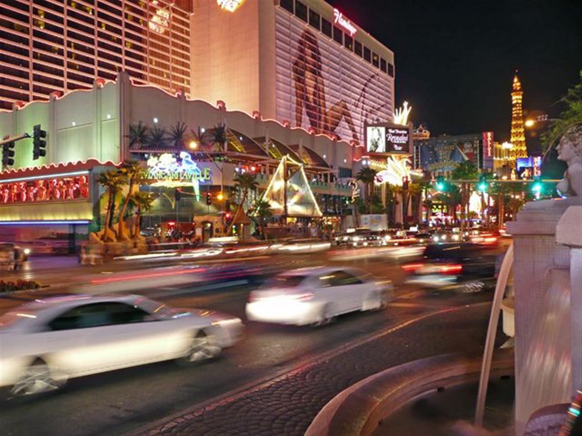 We go back to the strip for dinner in the evening. The lights are now more prominent and more colorful. Here the Flamingo