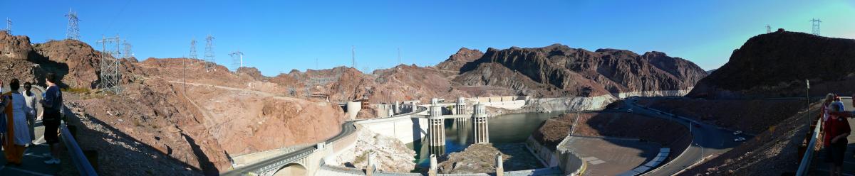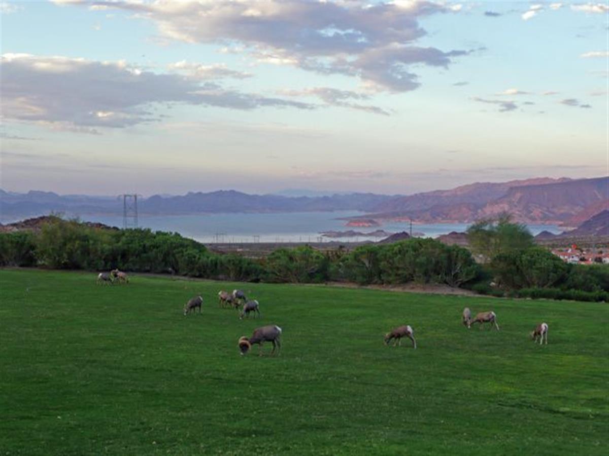 We stop at Boulder City at the way back. Wild rams have occupied a city park. The gras tastes probably better than what they find in the mountains. In the background Lake Mead, the lake created by the Hoover Dam