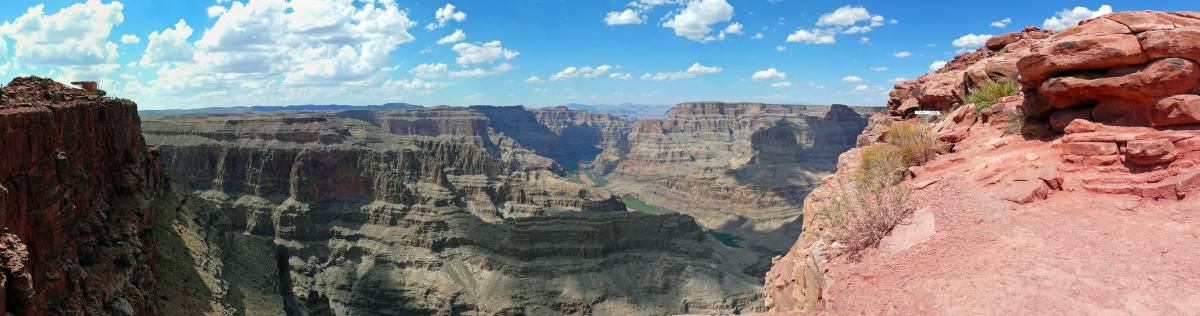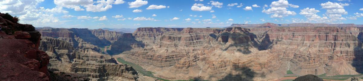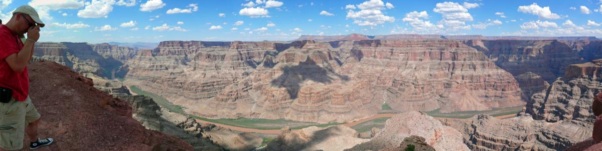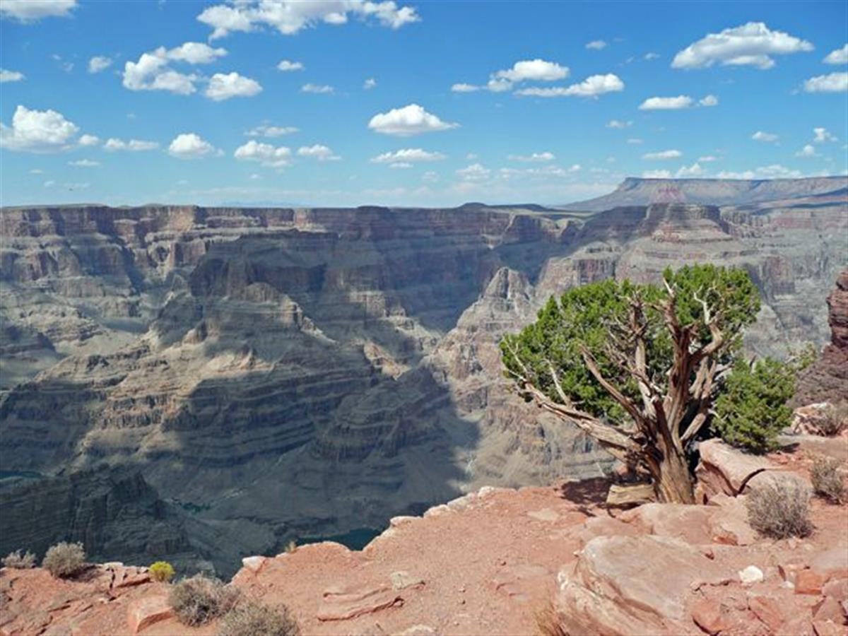 The Skywalk is a tourist rip-off. You are not allowed to take a camera with you. The canyon below the Skywalk is not very deep and it is a side canyon. You can barely see the Colorado river. You are not allowed to go to the edge if you are close to the Skywalk.