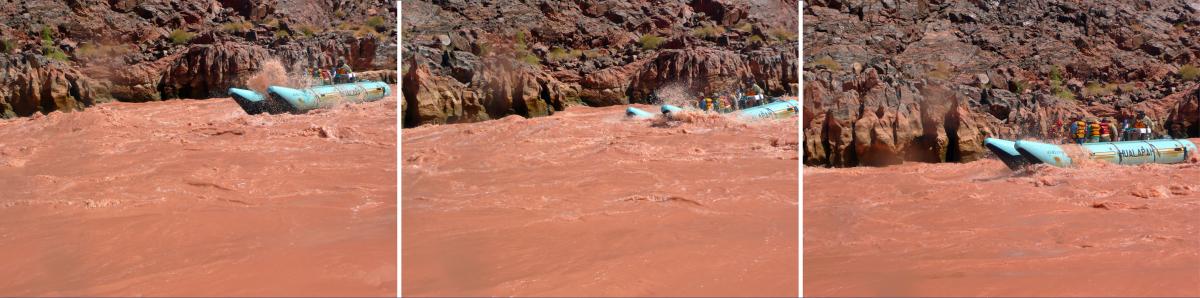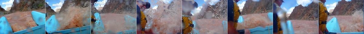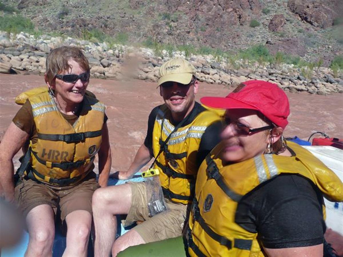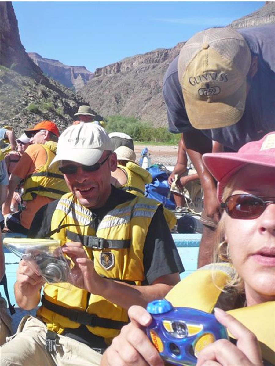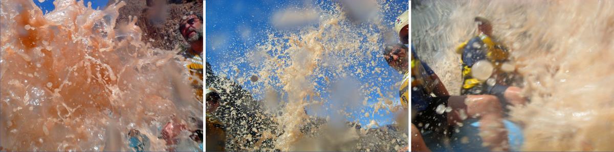 After passing the first rapids. We are wet and a bit surprised. We really get wet and the water temperature is about 50 F