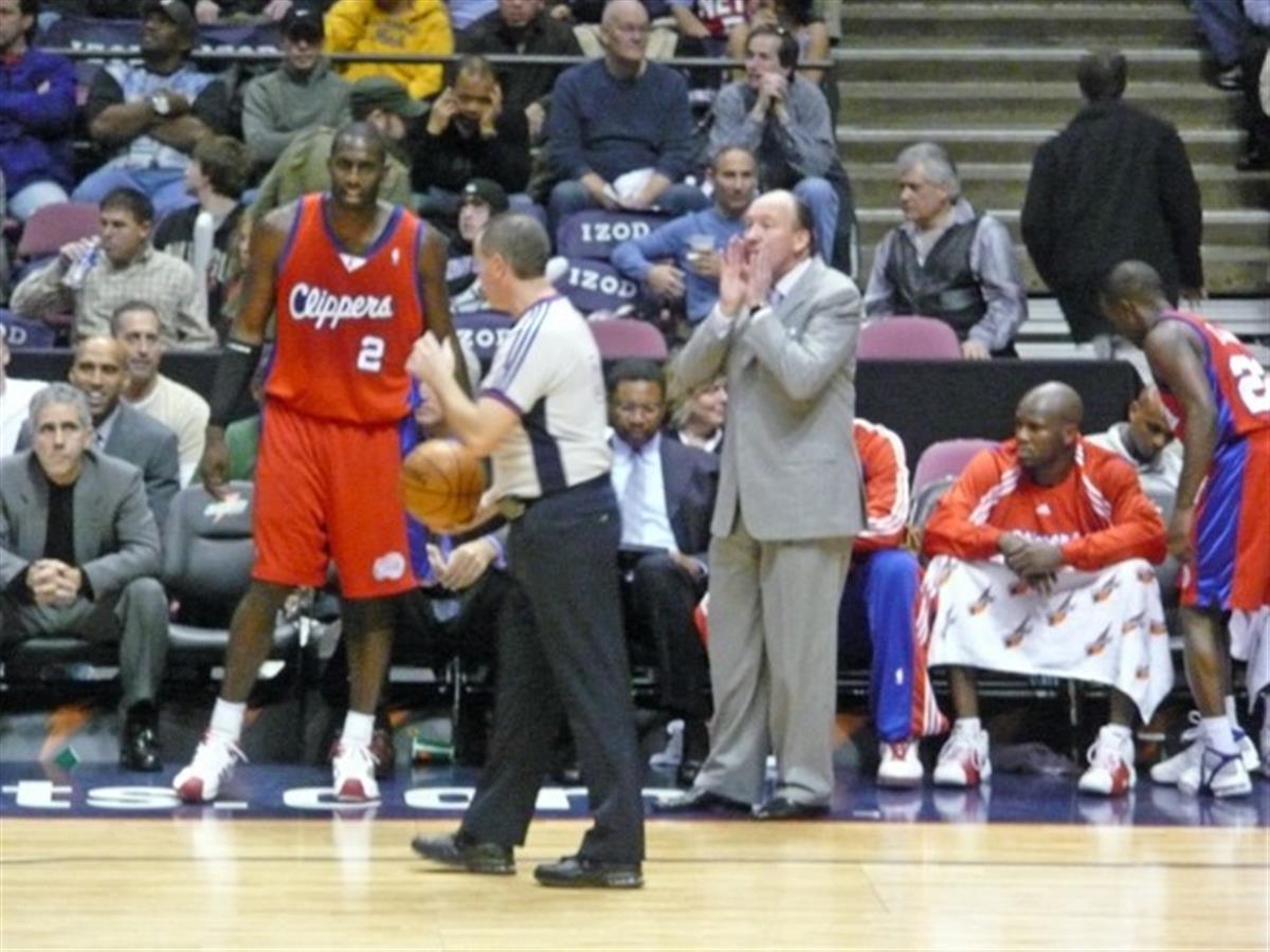 The coach of the Clippers (gray suit) is quite excited. But the Clippers play well and win in the end.