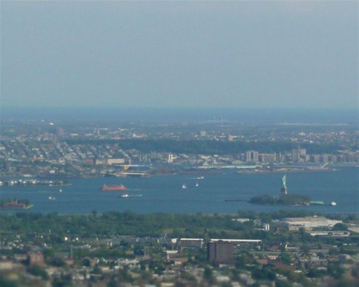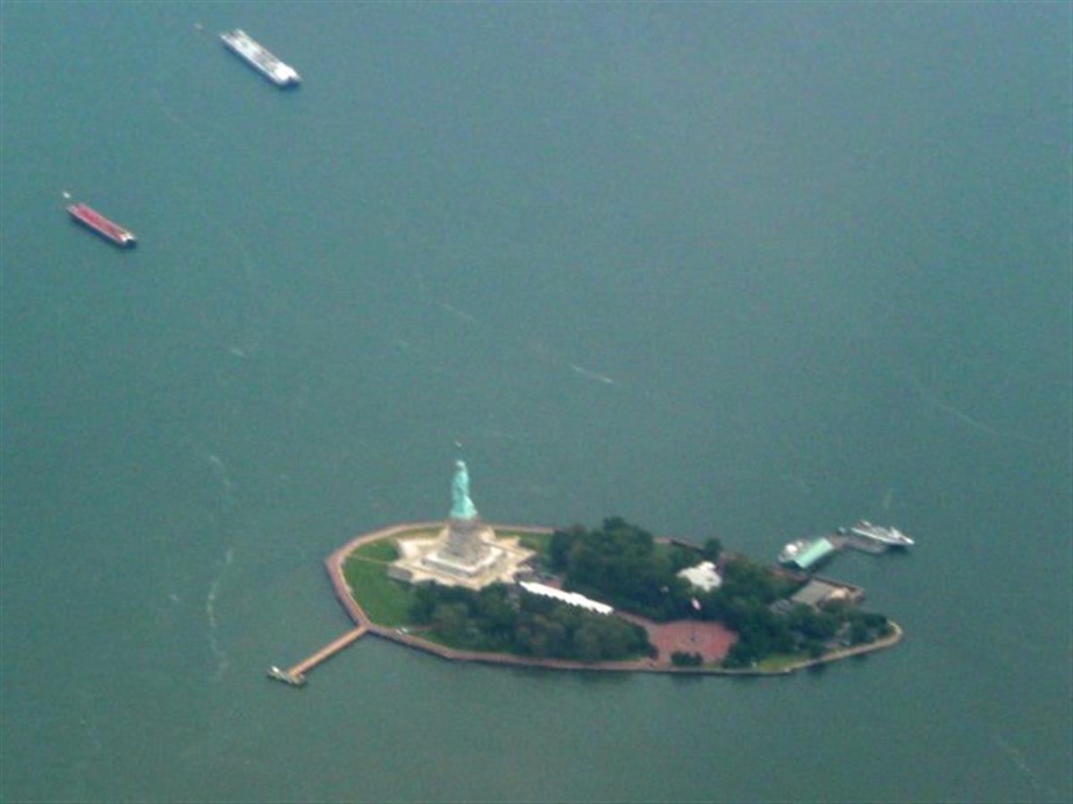 The flight goes over the Hudson and lower Manhattan so the Statue of Liberty is very close
