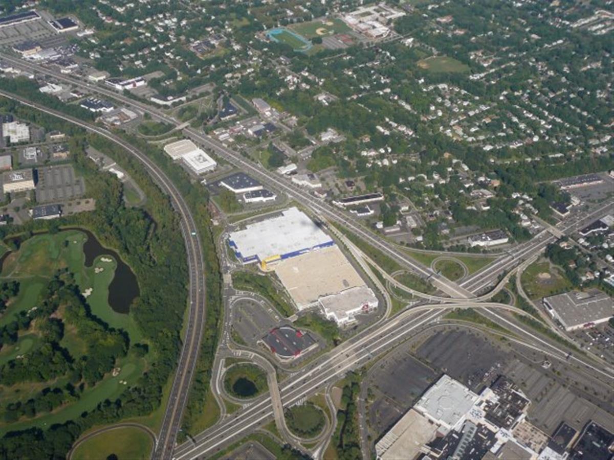Garden State Parkway, Route 17, Route 4 at Garden State Plaza. The building below is IKEA at Route 4/17