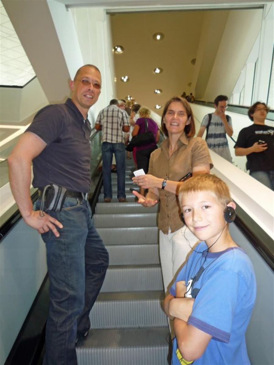 Tom, Moeni and Max on their way up into the exhibition room