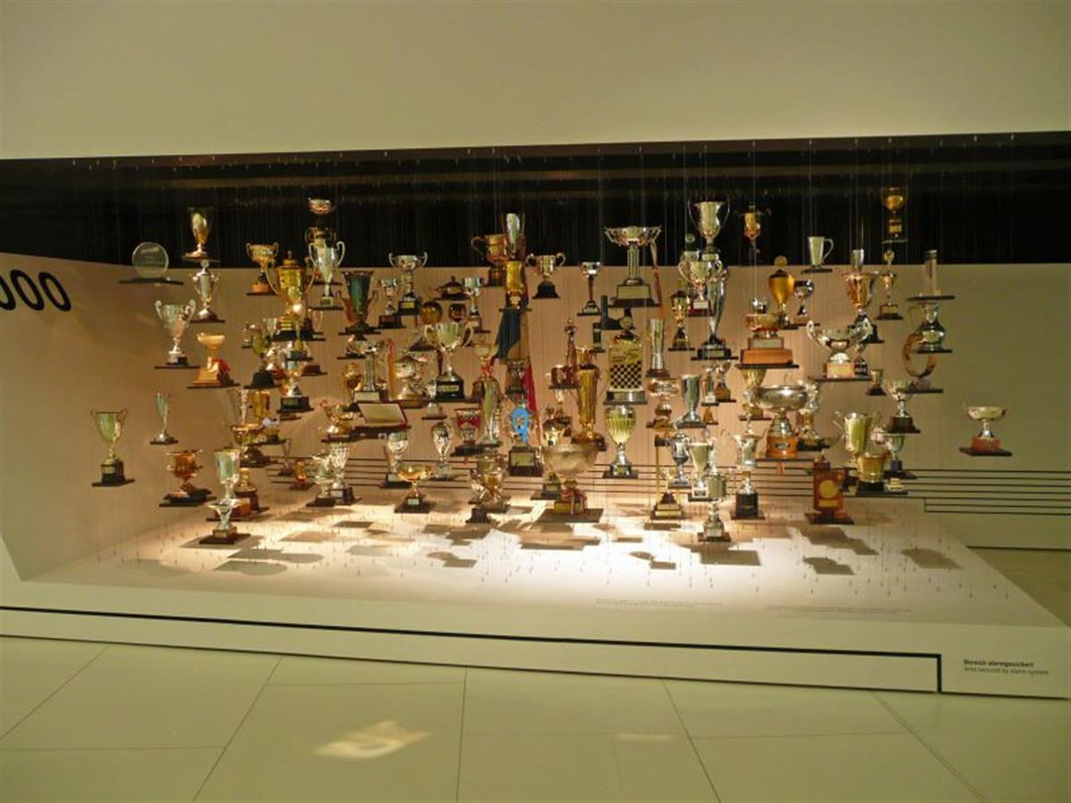 The exhibition is grouped into topics which are marked with a single word which belongs to the values of Porsche