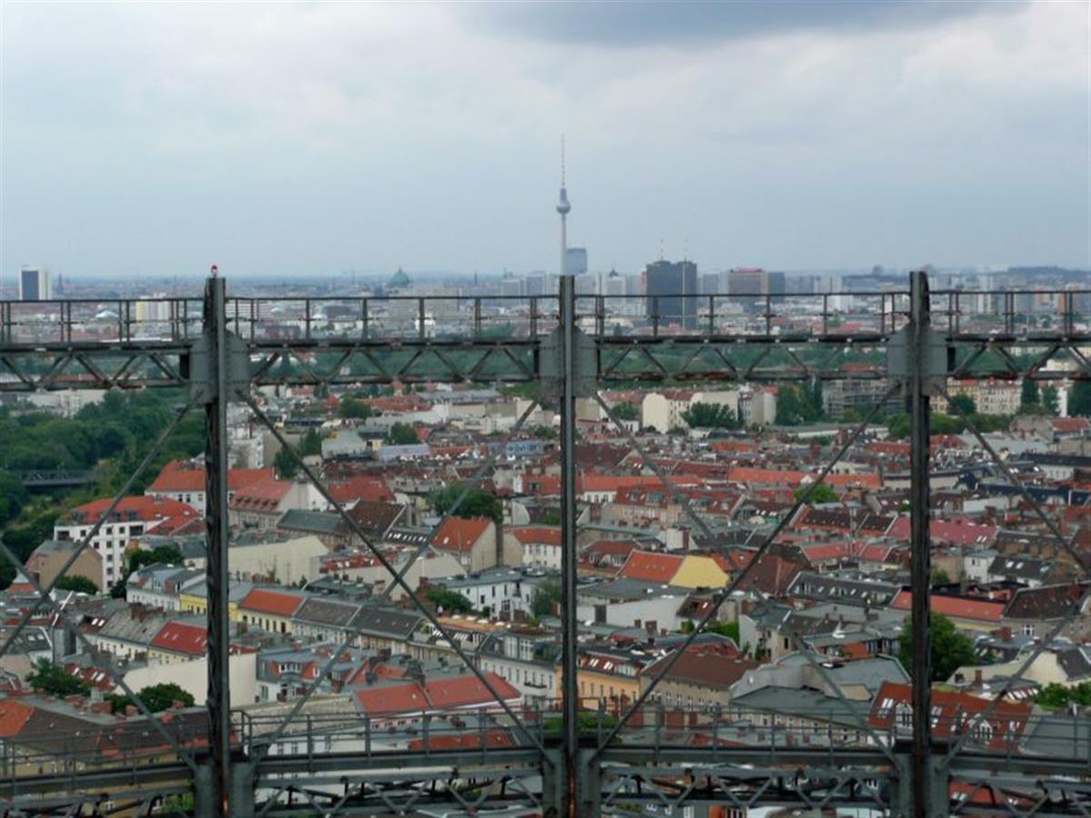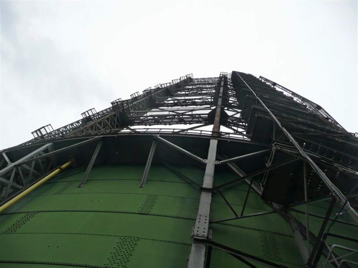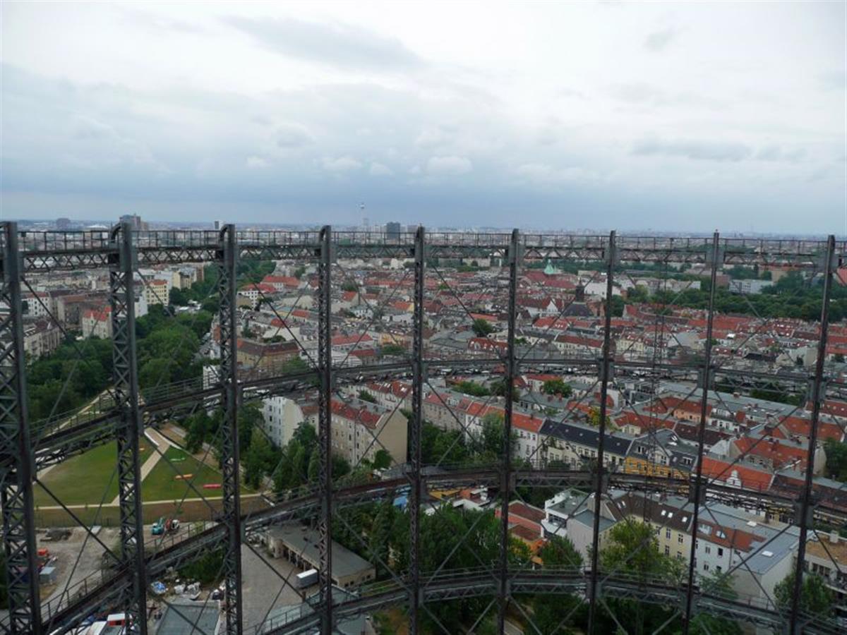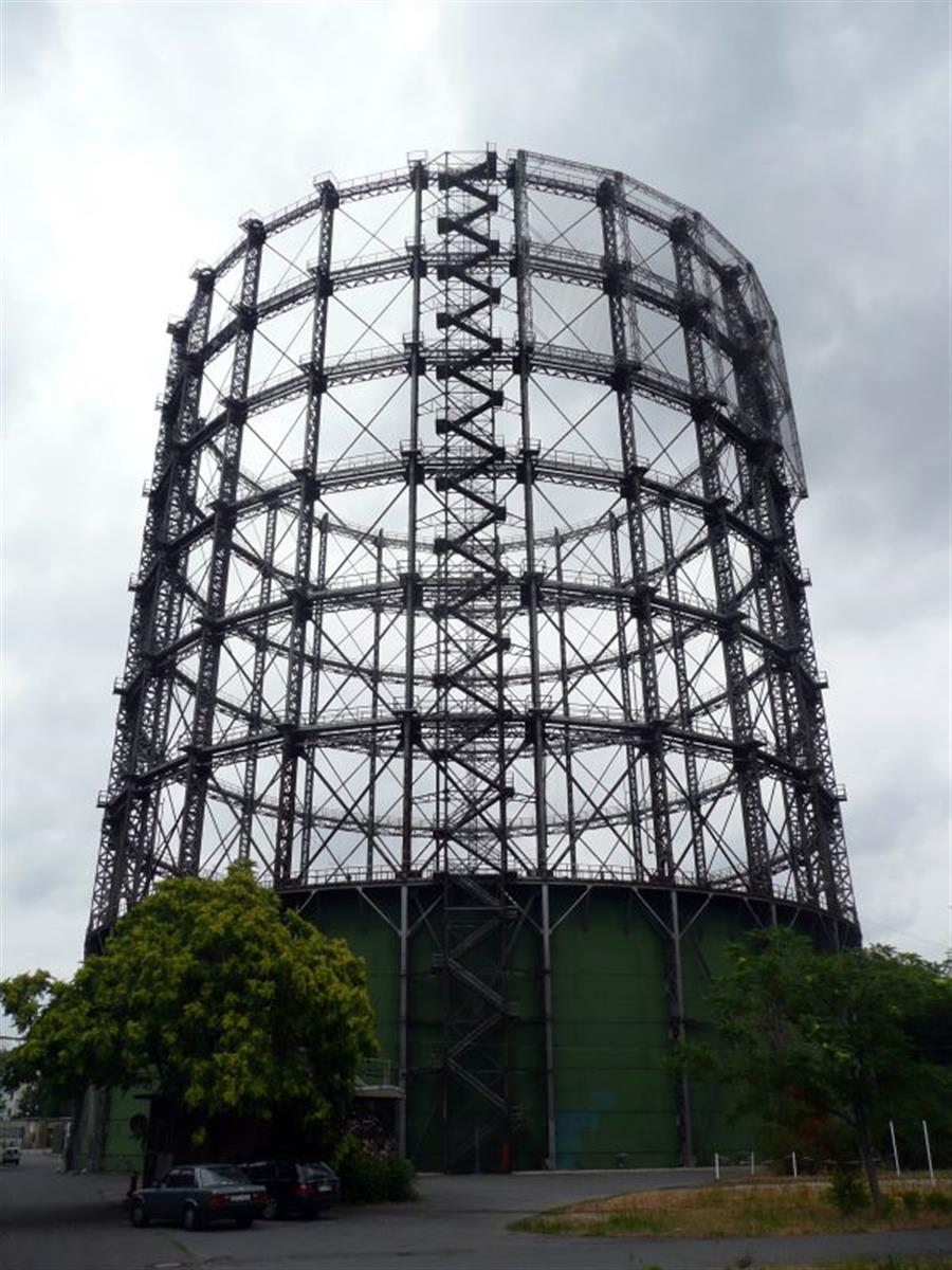 is one of the two remaining gas holders in Berlin. In former time they were used to store city gas mainly used for heating and street illumination.