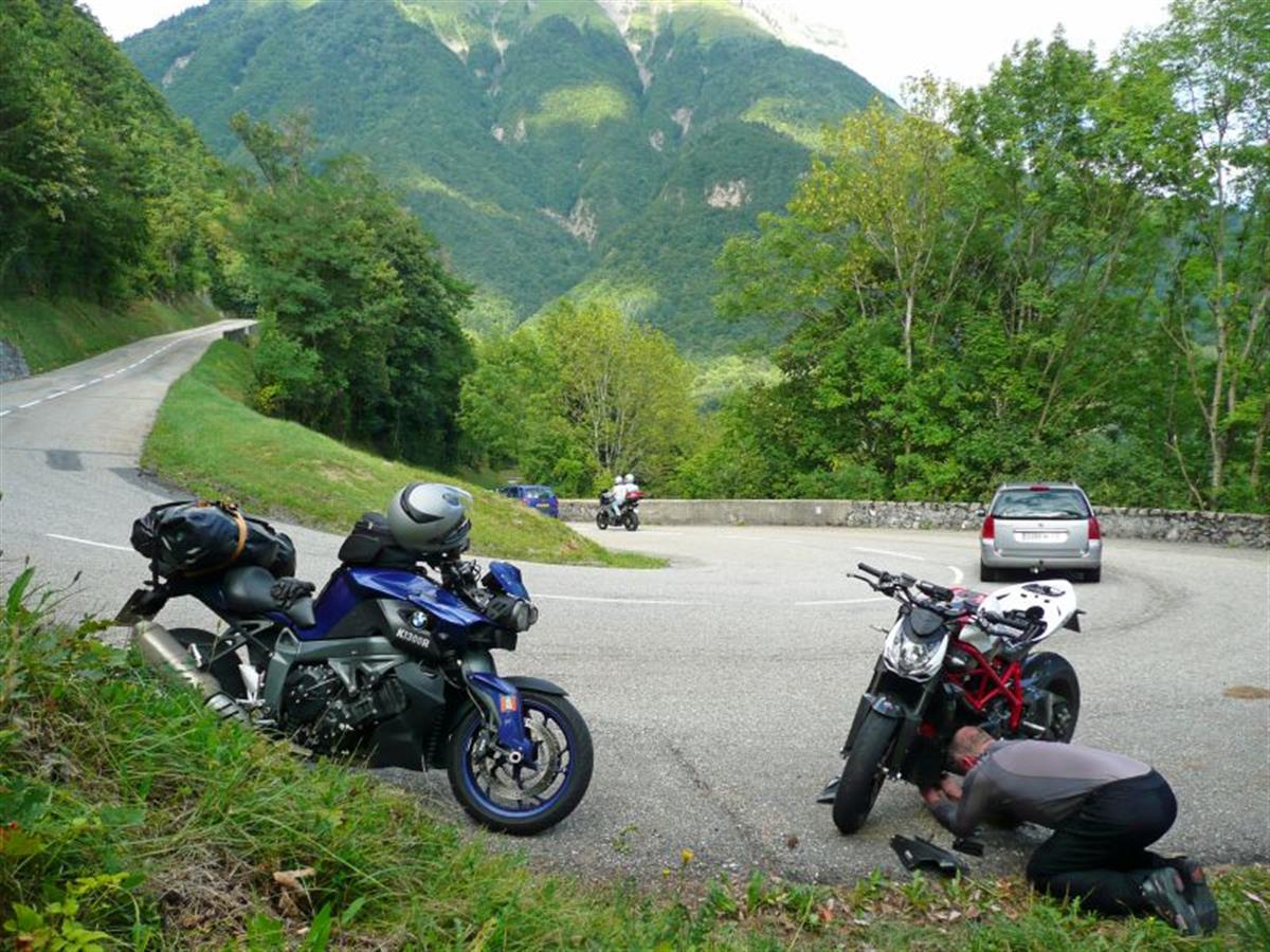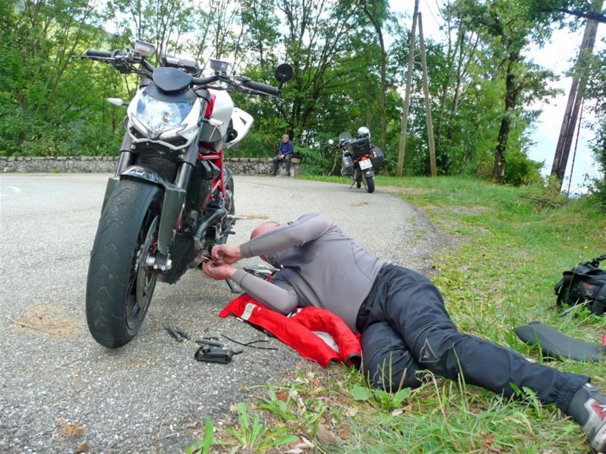 ... to perform some serious repair works on his Duc. The electrical system broke down completely due to a loose cabel connection. But Thomas is an experienced mechanic and it took him about 15 minutes to locate the failed cable and to fix it temporarily.