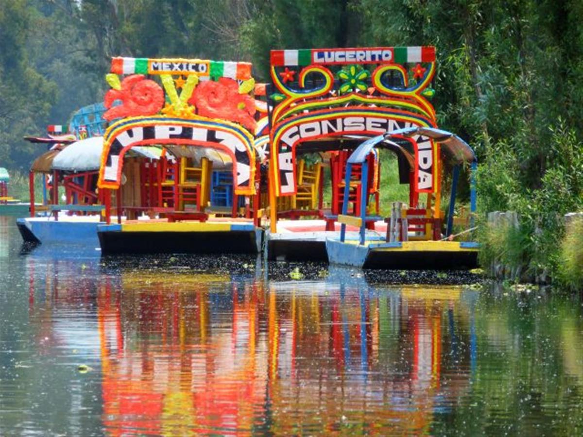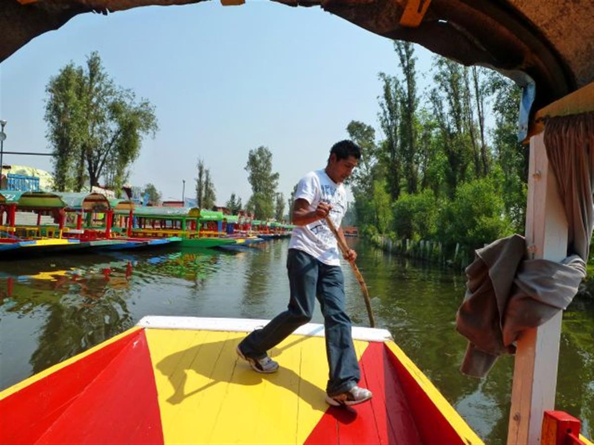 We go the the channels of Xochimilco in the middle of Mexico City. Barges get punt through the channels