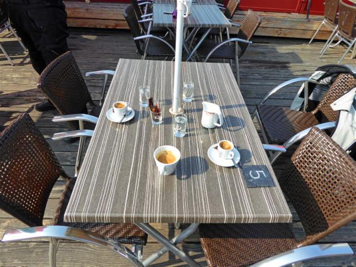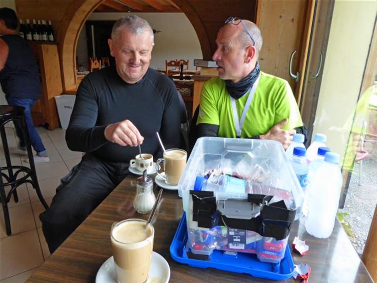 Coffee break on Col de la Clusaz. The dog was waiting for us
