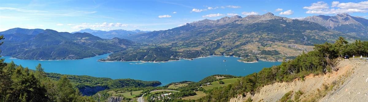 The only day with an unchanged route. We go to Barcelonette and pass Lac de Serre-Ponçon. The lake glows blue in the sun as always.