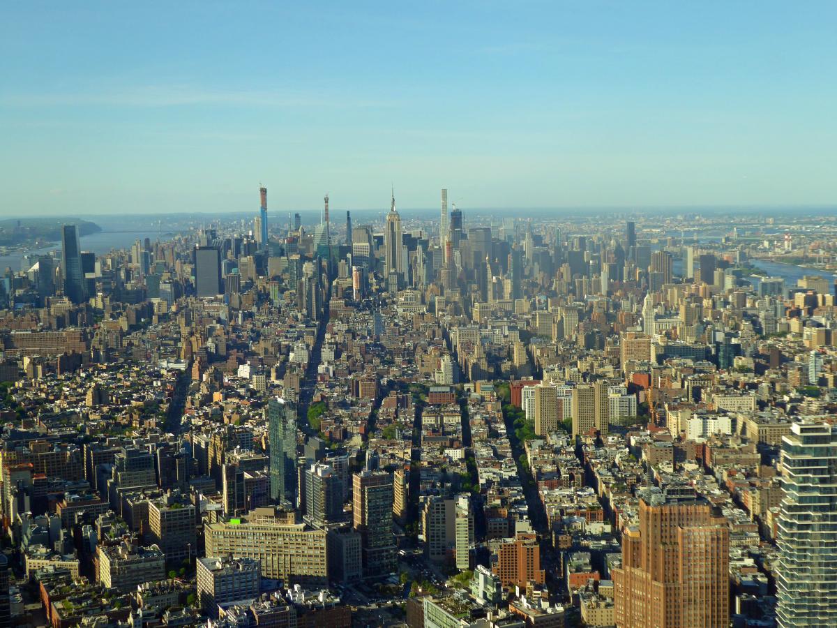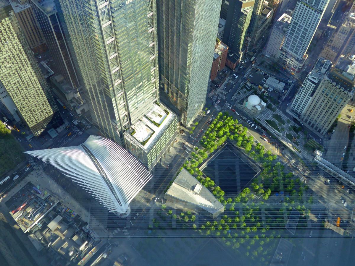 I am on a business trip in New York. I use some spare time to walk from 45th street 3.7 miles down to One World Trade Center in splendid weather. I want to have the view from One World Observatory, want to visit the 9/11 memorial and the new train station.