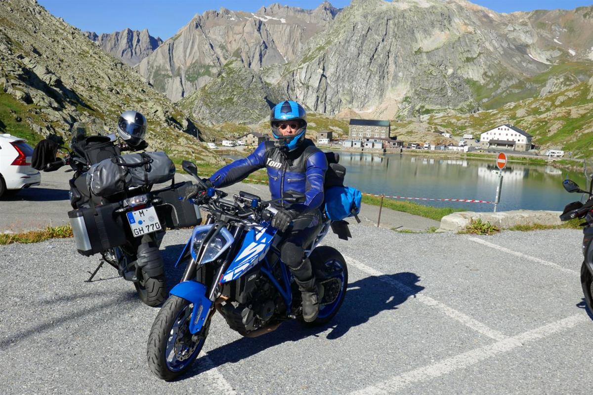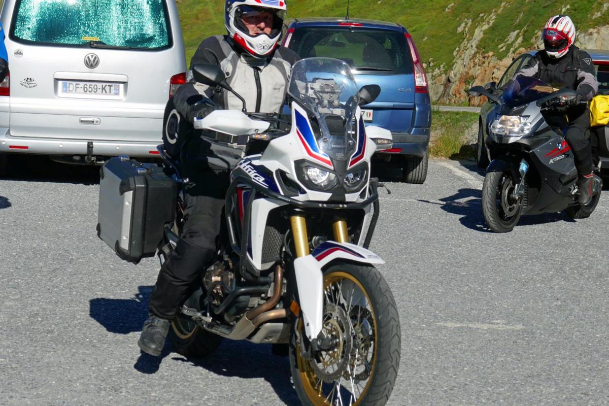A brilliant day and a day packed with highlights. We start with Col du Grand Saint Bernard, ride through the Italian Aosta valley. We return to France via Petit Saint Bernard and then proceed to Cormet de Roselend, Col du Pré and Col de la Madelaine and finally Montvernier. Great. I notice my leaking radiator and we will need to deal with it over the next days.