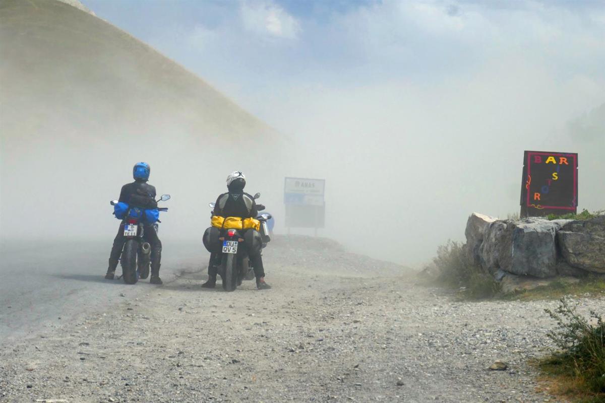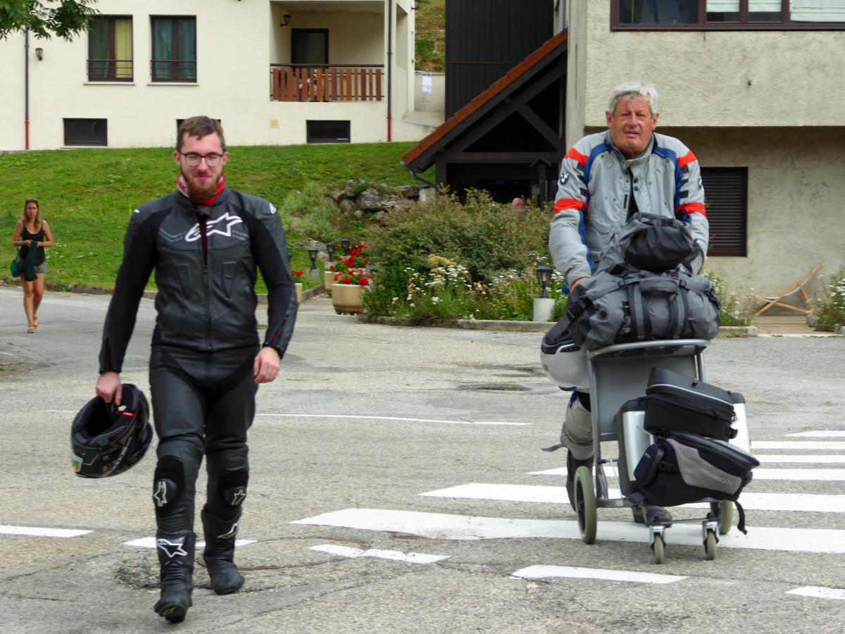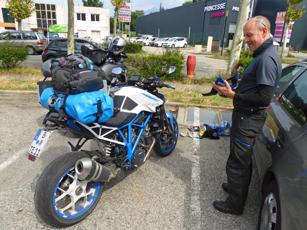 The day starts with fog and rain. But it will get better over the day. We look forward to more highlights. We have Col d'Izoard, Col de la Lombarde and Col de la Bonette on the agenda. But first Marcellus and I have to take care of my radiator.