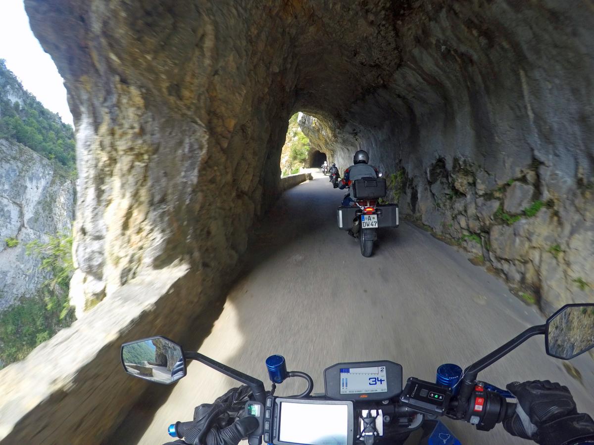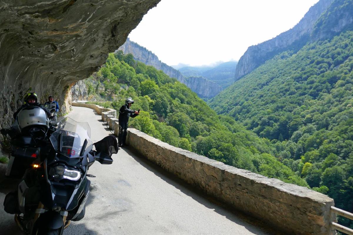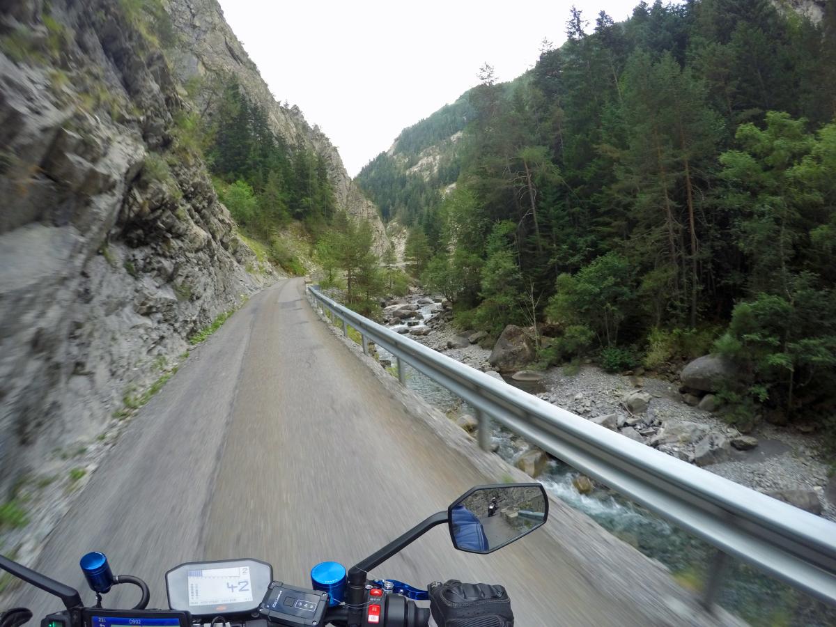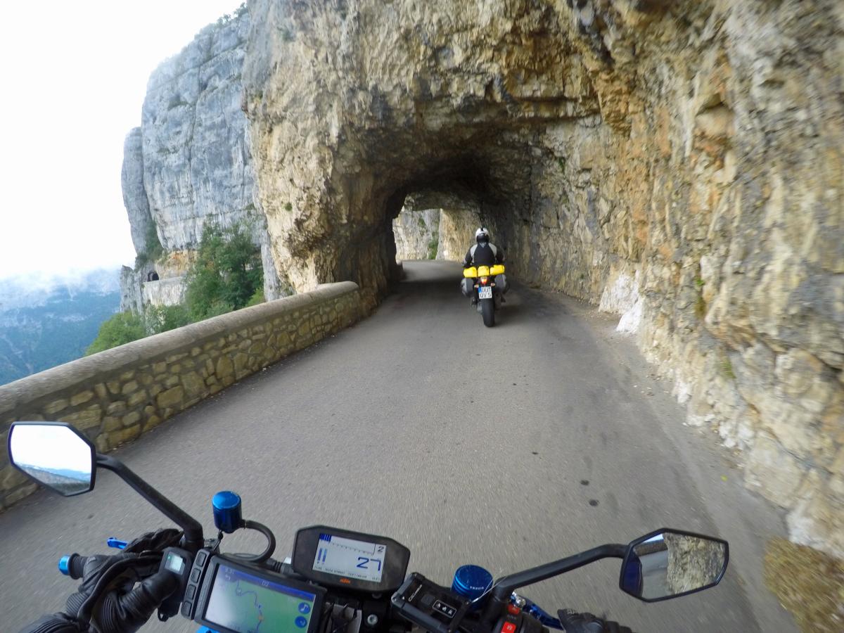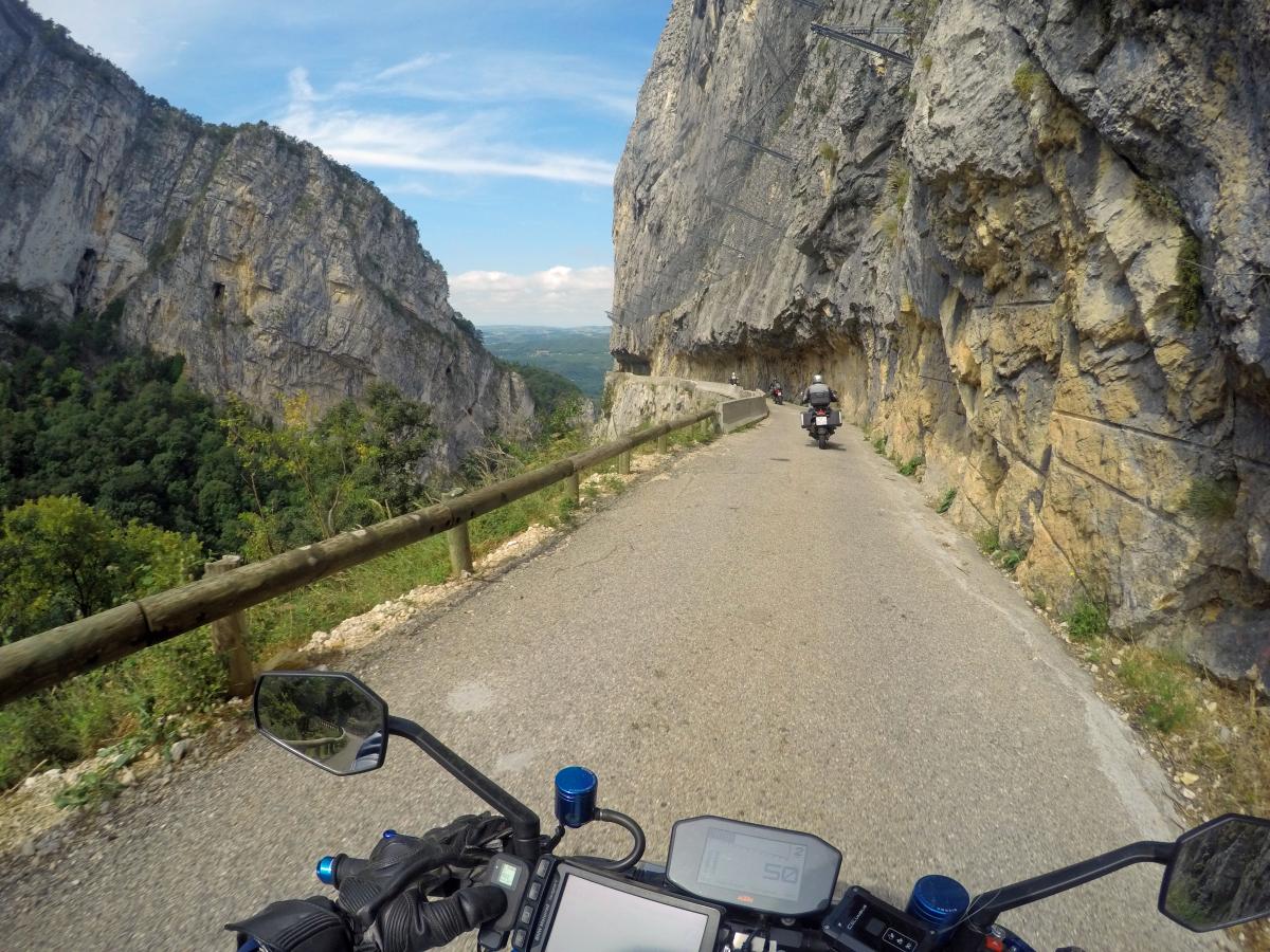 We go further north. The chestnut farms in the Isere valley are waiting as well as the roads carved into the rocks at Col Gaudissart and Gorges du Nan. The radiator is leaking again and we try to get help at KTM Grenoble. They cannot help but we refill anti leakage fluid.