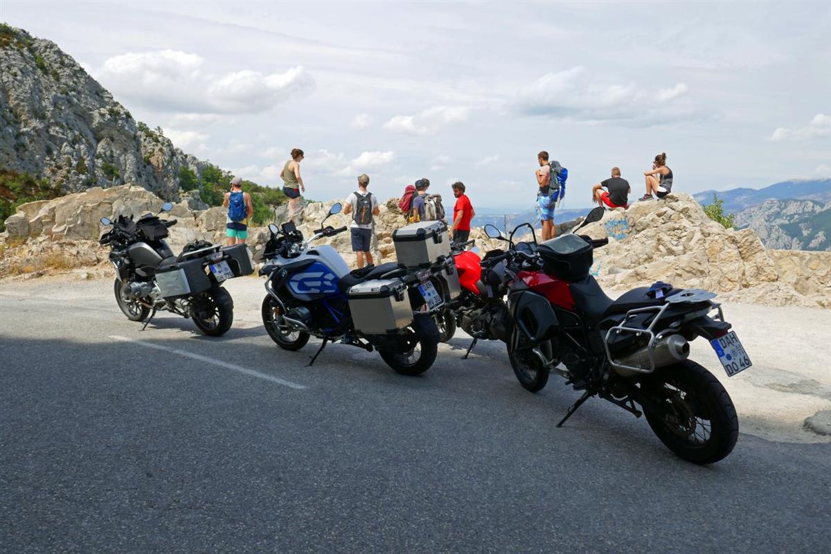 We stay in Barcelonnette and do a southern loop. Beat, Marcus, Wolfgang and I ride via Roubion and Entrevaux and the others visit Grand Canyon du Verdon. The radiator works for the moment.