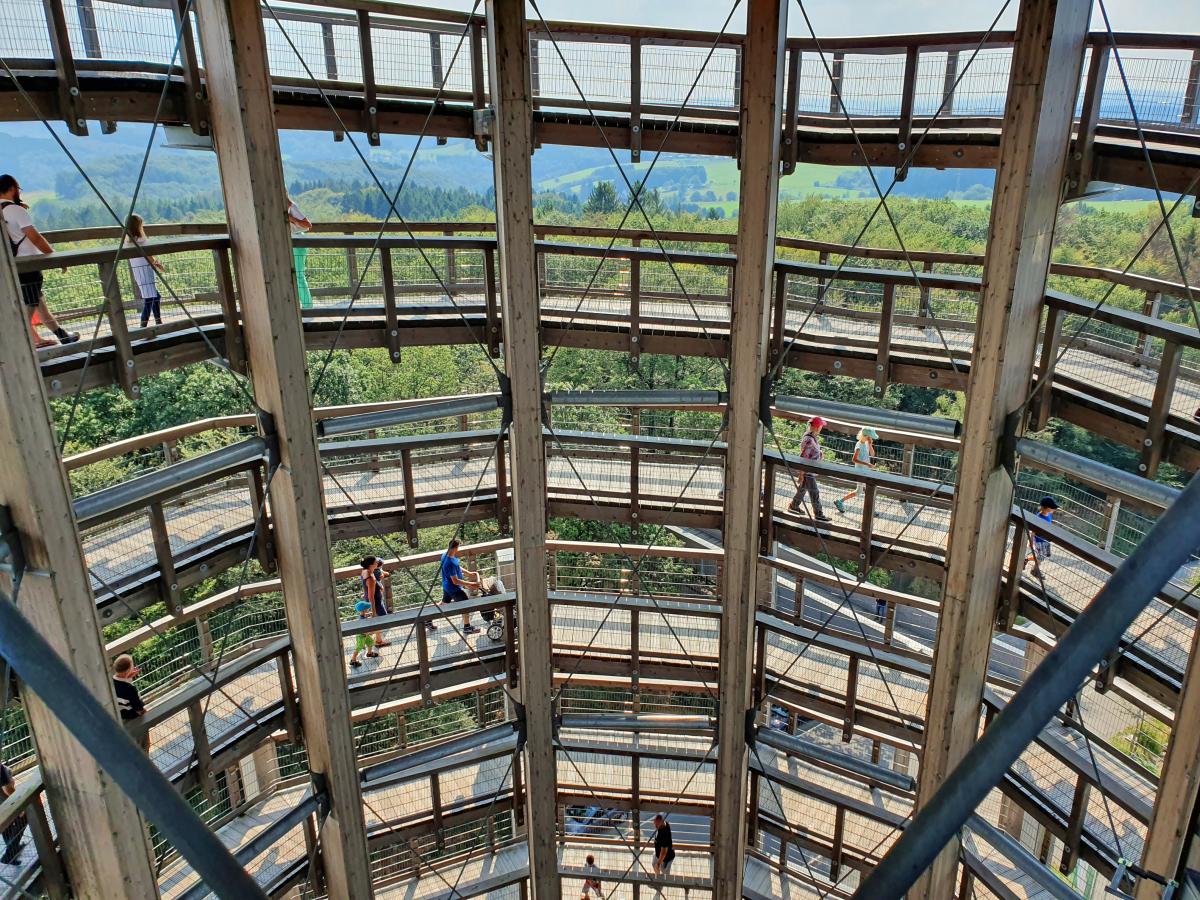 I go to Wuppertal to visit friends.On Sunday we do a family tour to a tree top path in Waldbröl. It is very hot and I cannot do much this day.