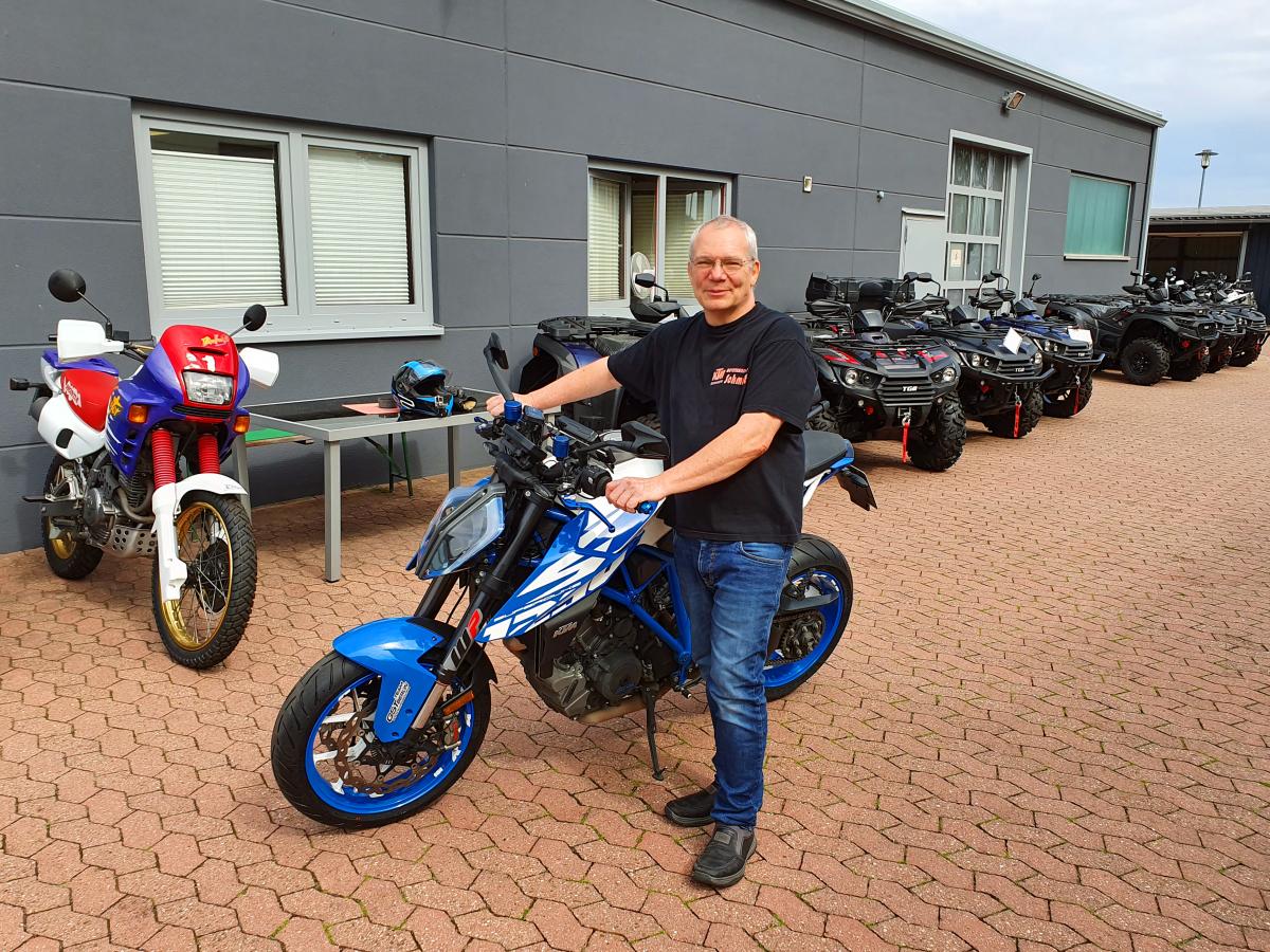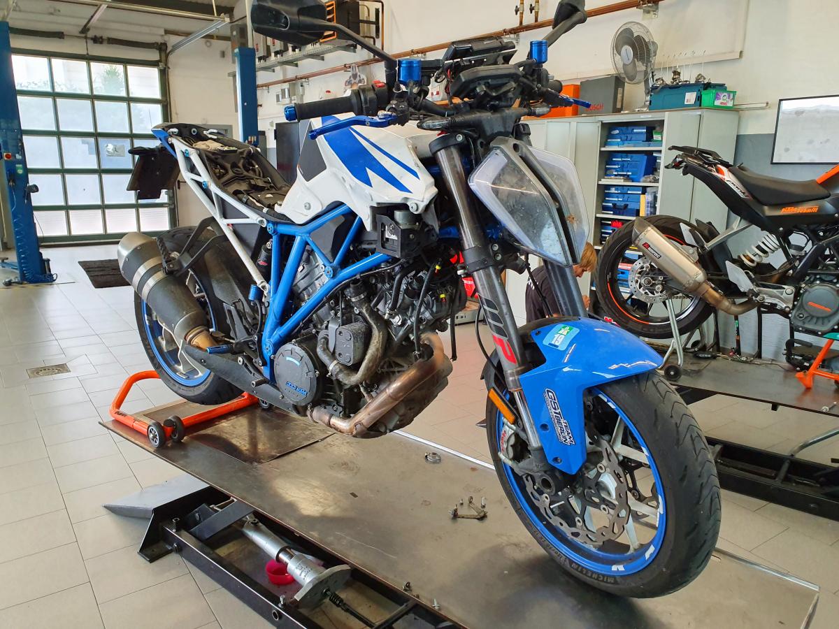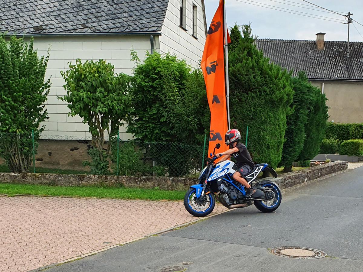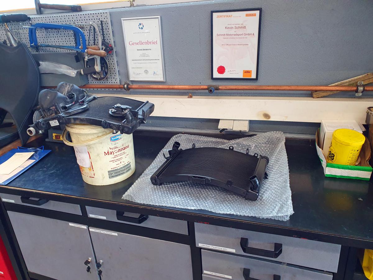 I go to KTM Motorradsport Schmitt. I get new tires, new brake pads and a new radiator. So I am ready for the training on Nürburgring Nordschleife racetrack.