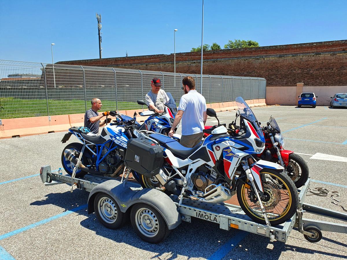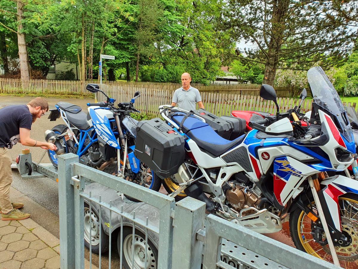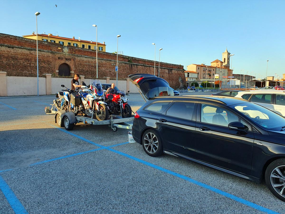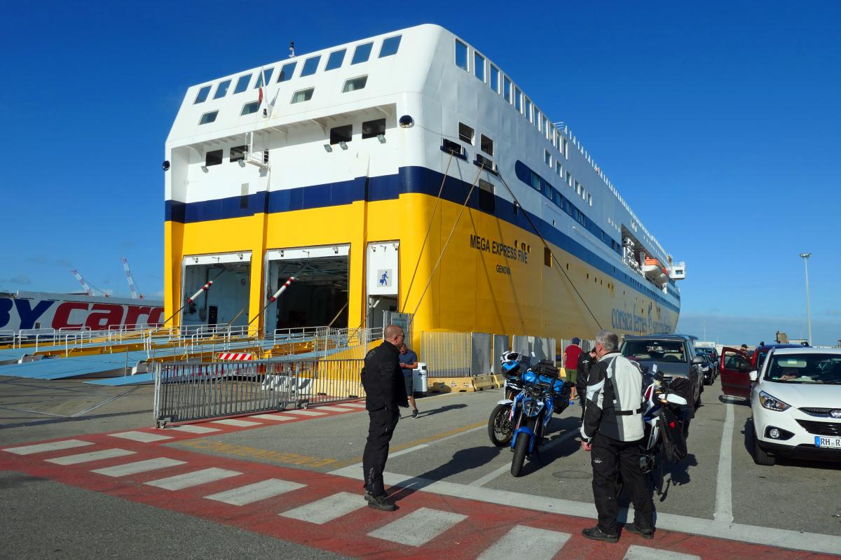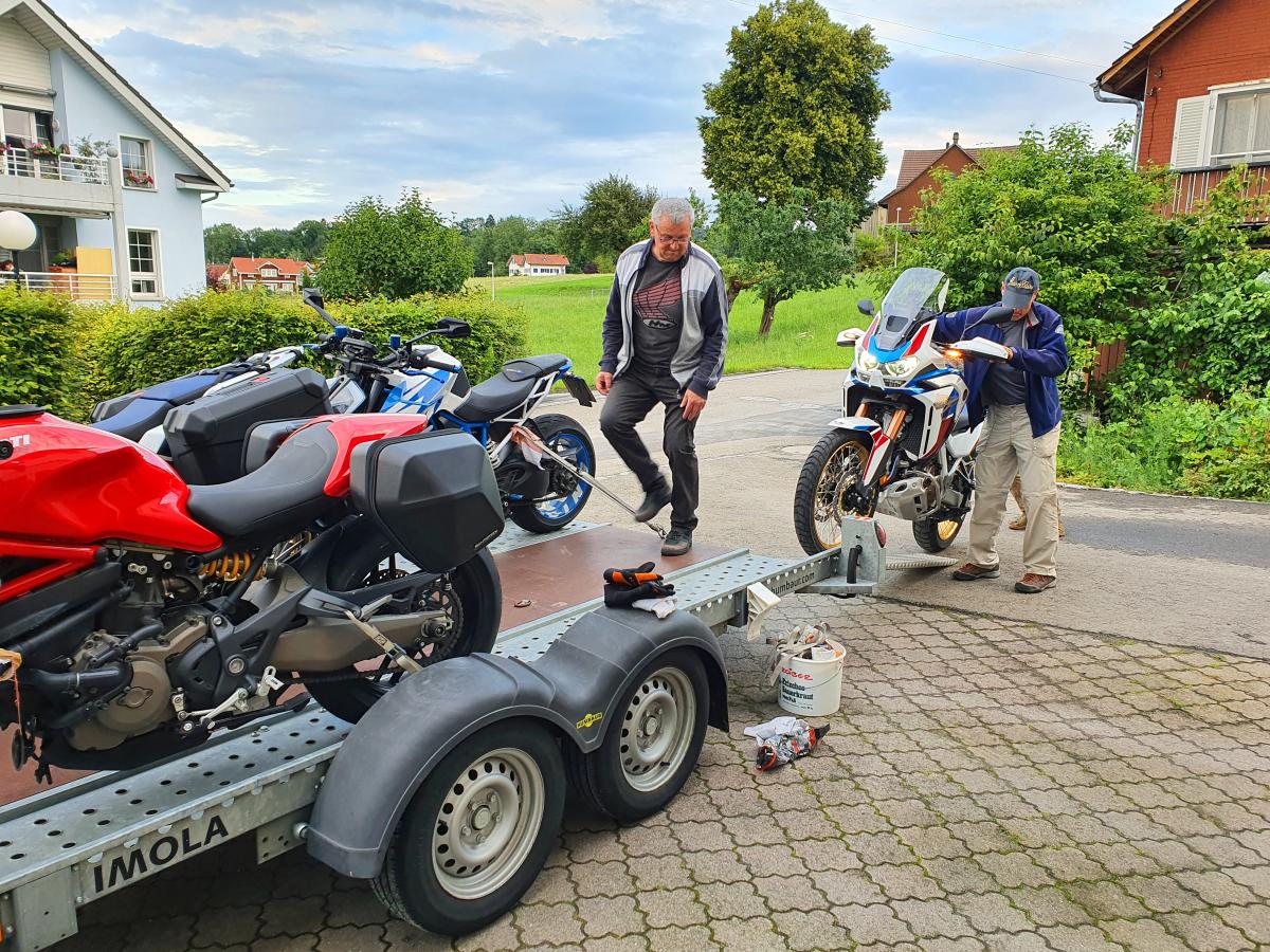 The journey back is again very exhausting. The ferry leaves at 8 in the morning and we have to be there at 7 at the latest. At noon the ferry is in Livorno. Then the trailer is to be loaded and we drive the 500 miles back to Germany with a stopover in Switzerland to drop off Beat. At two in the night we are in bed. Then it goes directly on Sunday morning on the bike further back to Berlin.
