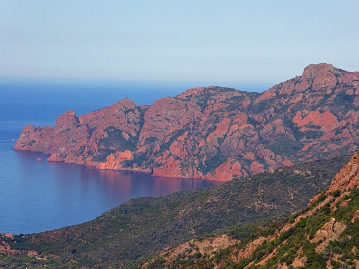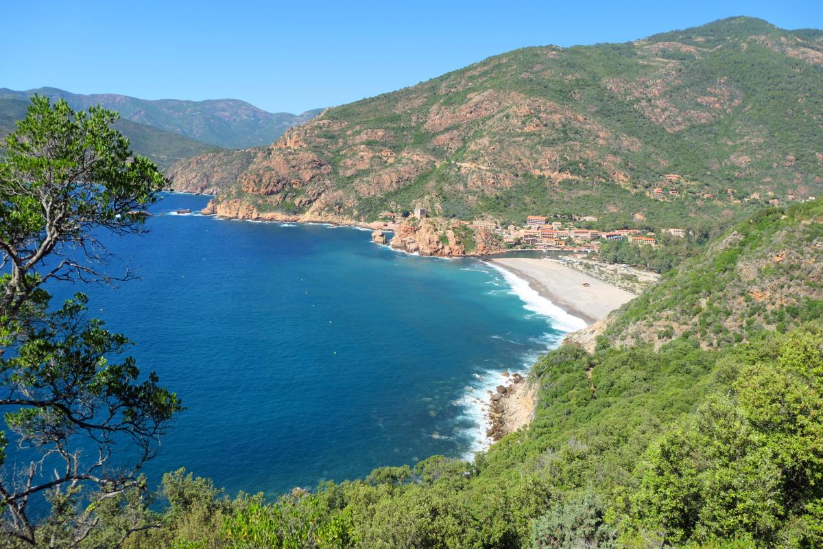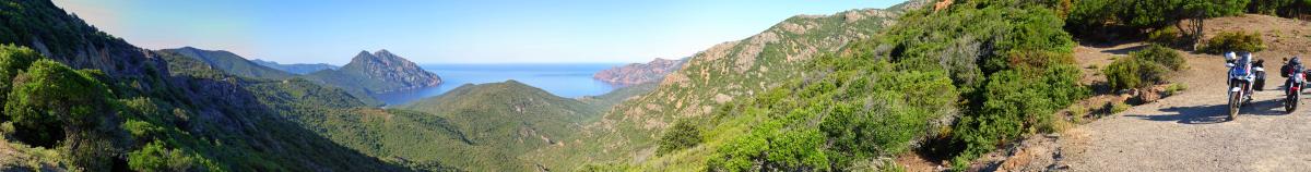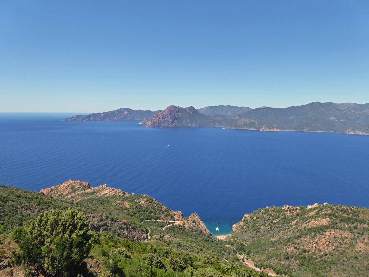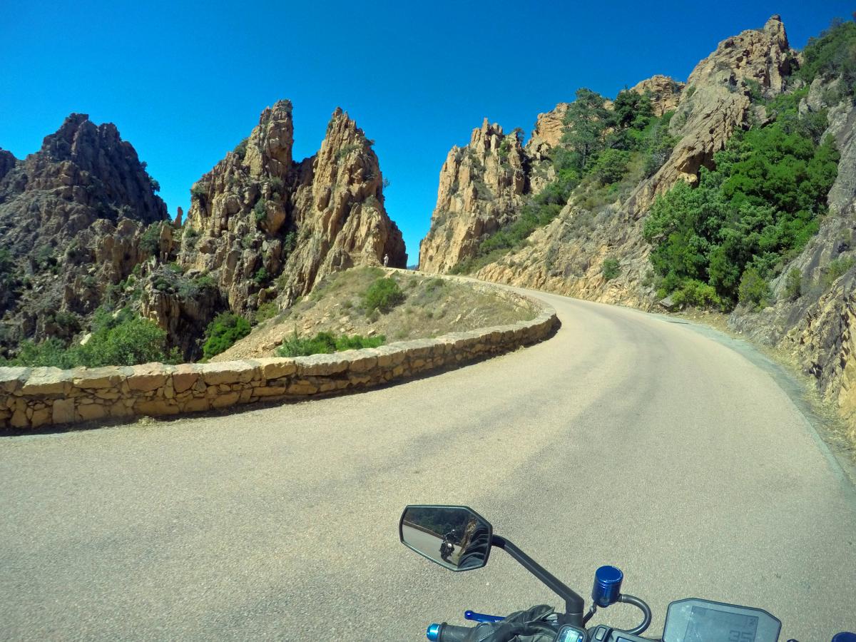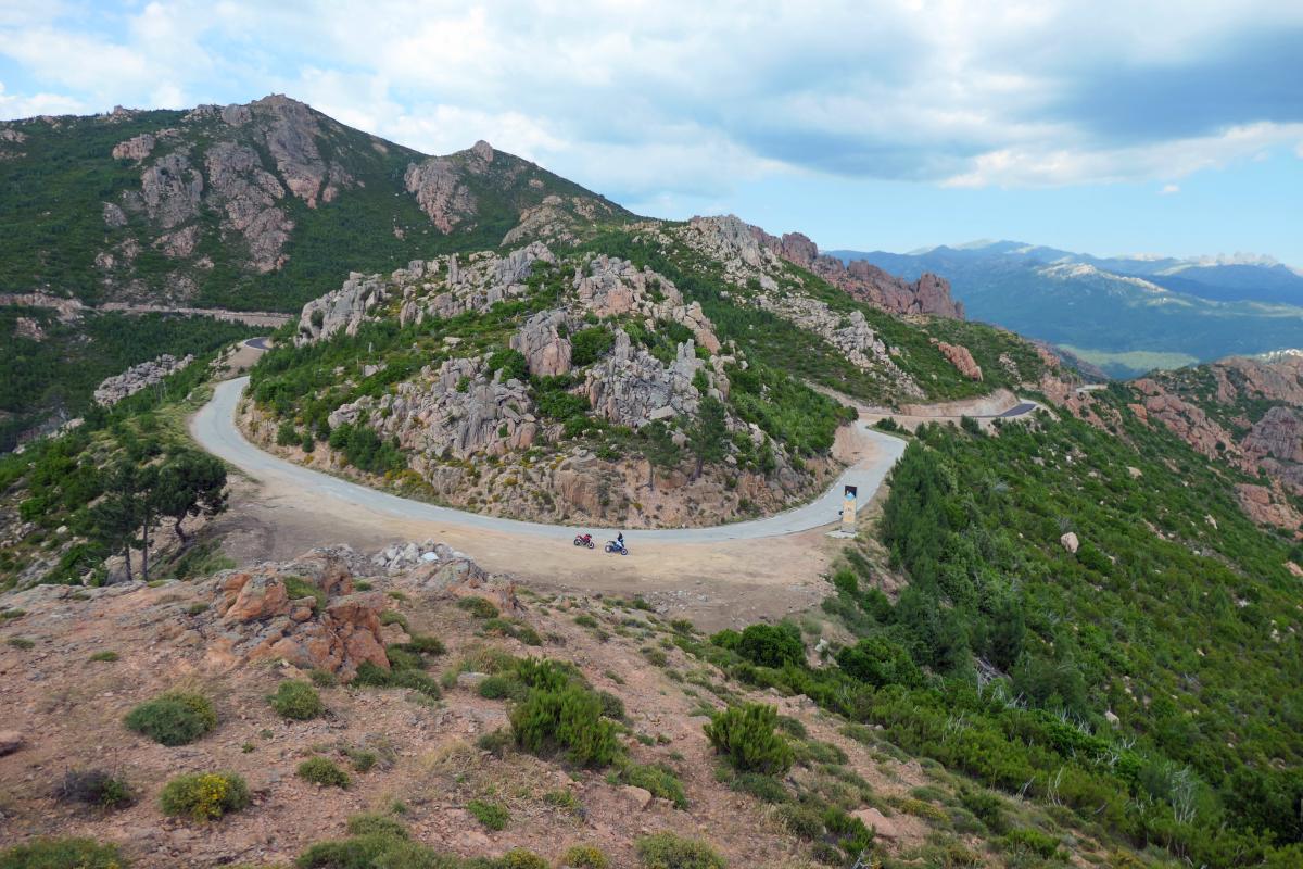 We do a big loop to the southwest through the mountains and along the coast and also pass the red rocks Les Calanques de Piana. The coastal road at the end is so bumpy that we exclude it for the future.