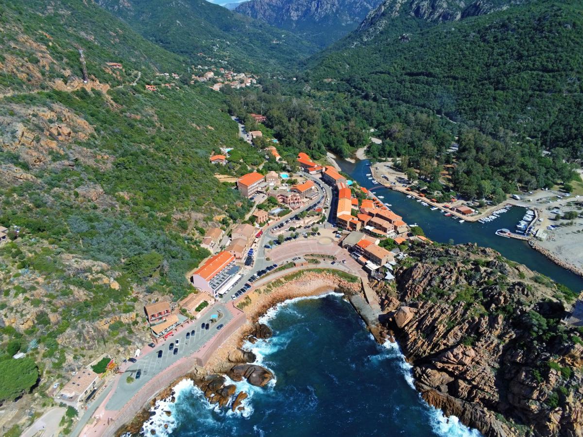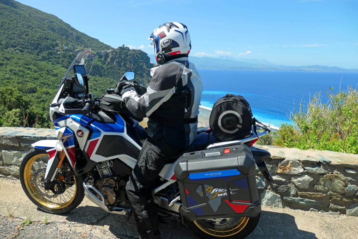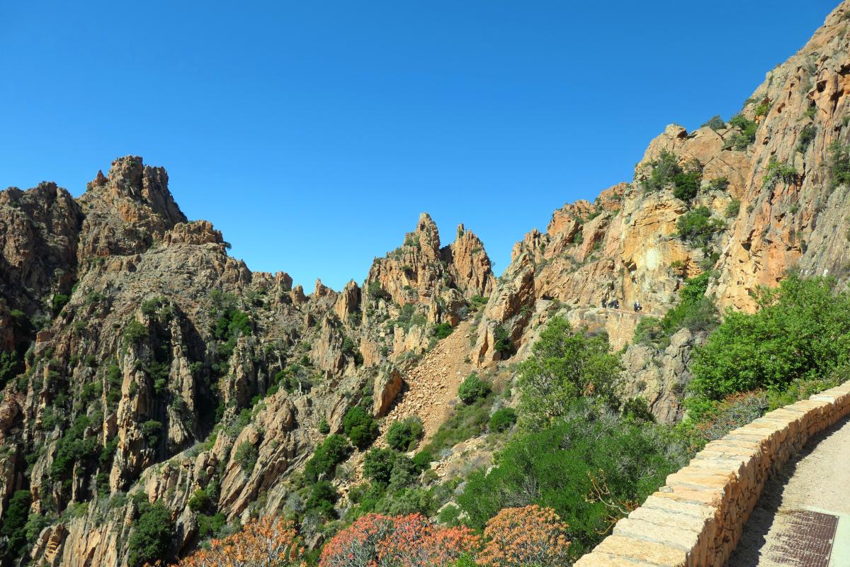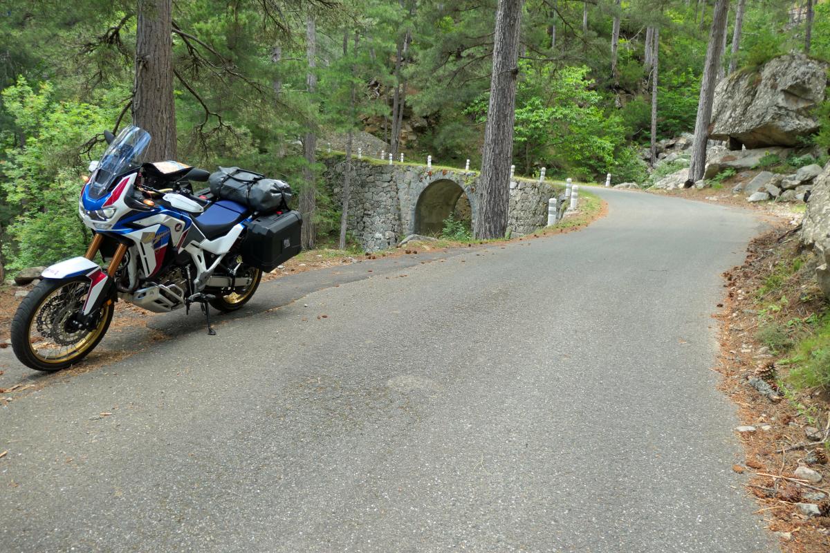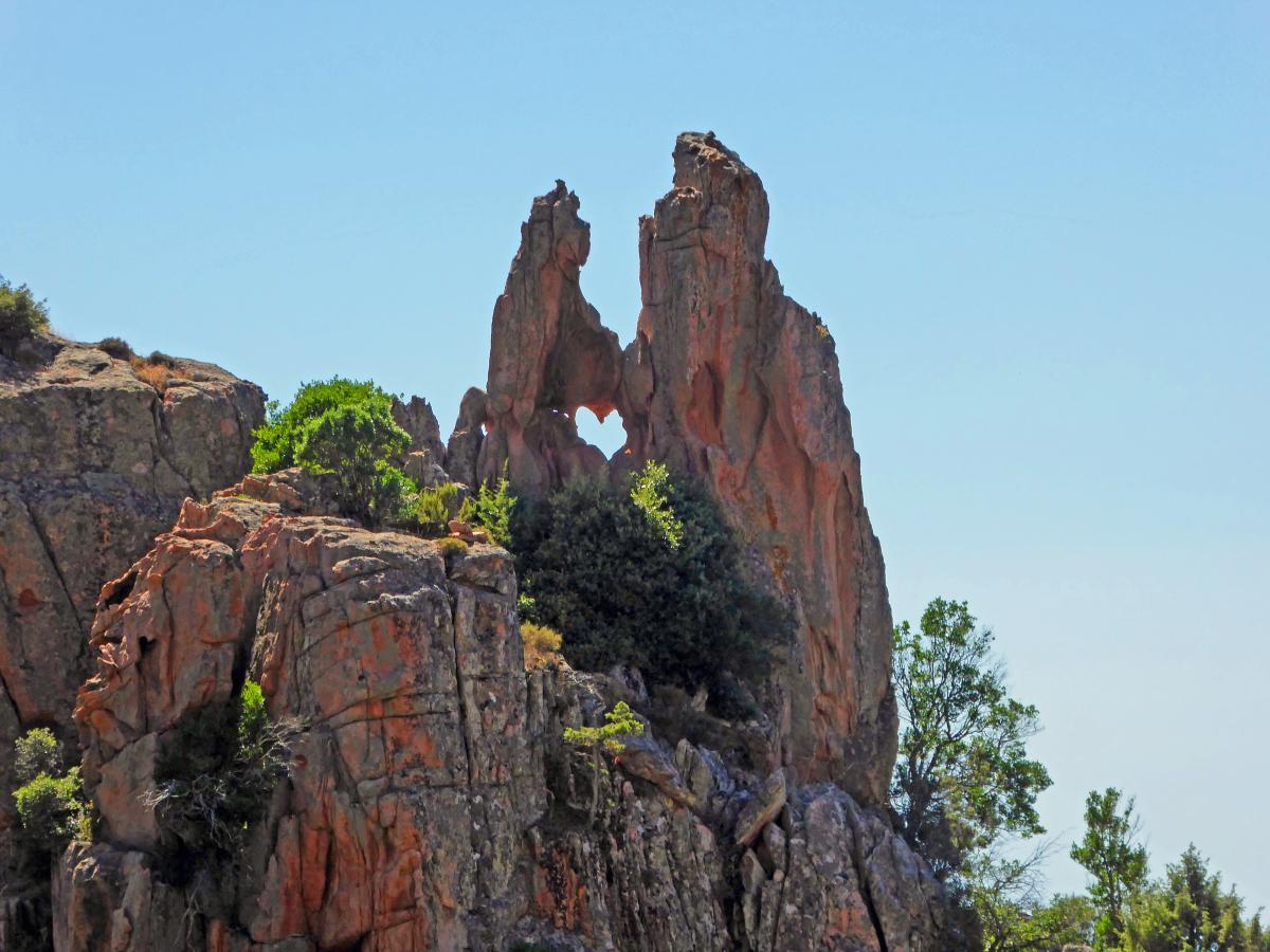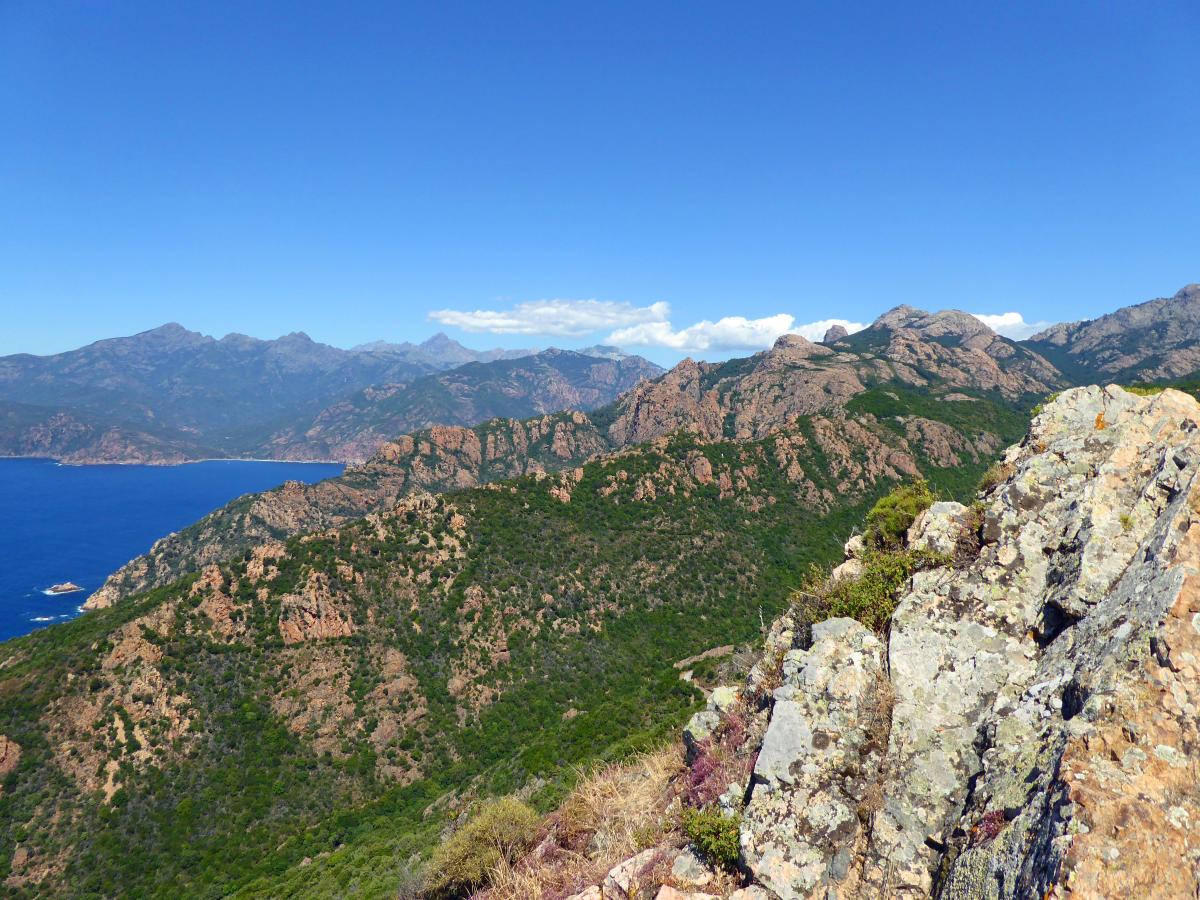 We do a big loop to the southwest through the mountains and along the coast and also pass the red rocks Les Calanques de Piana. The coastal road at the end is so bumpy that we exclude it for the future.