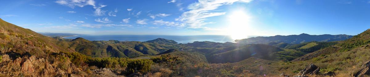 Before that, we pass the Tour Madeloc. The road is new to us. Last year we could not drive it because of a fallen tree. Magnificent view of the French Mediterranean coast from there.