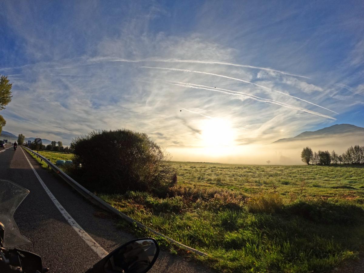 The weather is very gracious to us this time. In the morning it is quite fresh and there is morning fog but then the sun comes out and it becomes very pleasant. Only on the last 100 kilometers we have some rain.