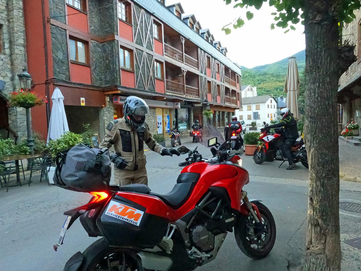 Then it goes pretty quickly via Puerto del Cantó, Port de la Bonaigua and two more passes to the Hotel Ciria in Benasque, where again a great menu for dinner awaits us.