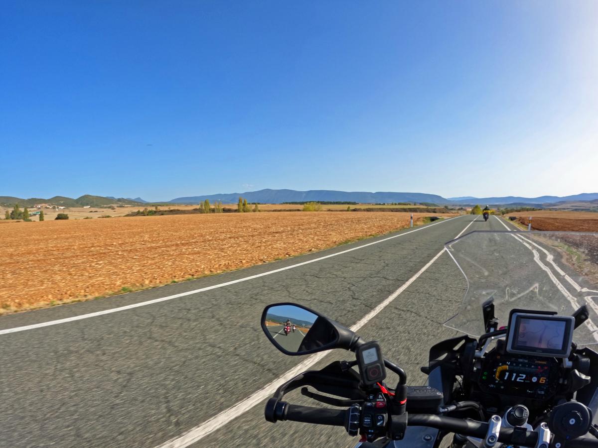 We have to make distance in order to progress back towards the Mediterranean Sea. Therefore, we ride some highway-like roads (autovias). However, some bumpy roads hold us up a bit. Especially the road away from Sos del Rey Católico is very unpleasant to drive.
