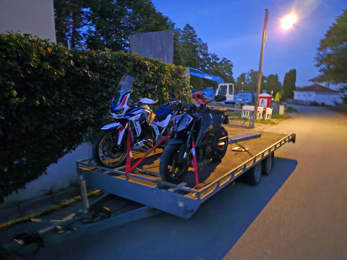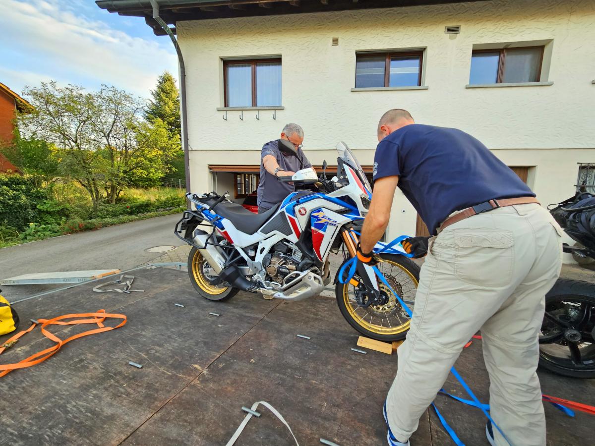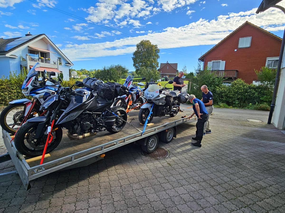 First I drive 700km from Berlin to Marcellus at the Ammersee. There we load the bikes on the trailer.