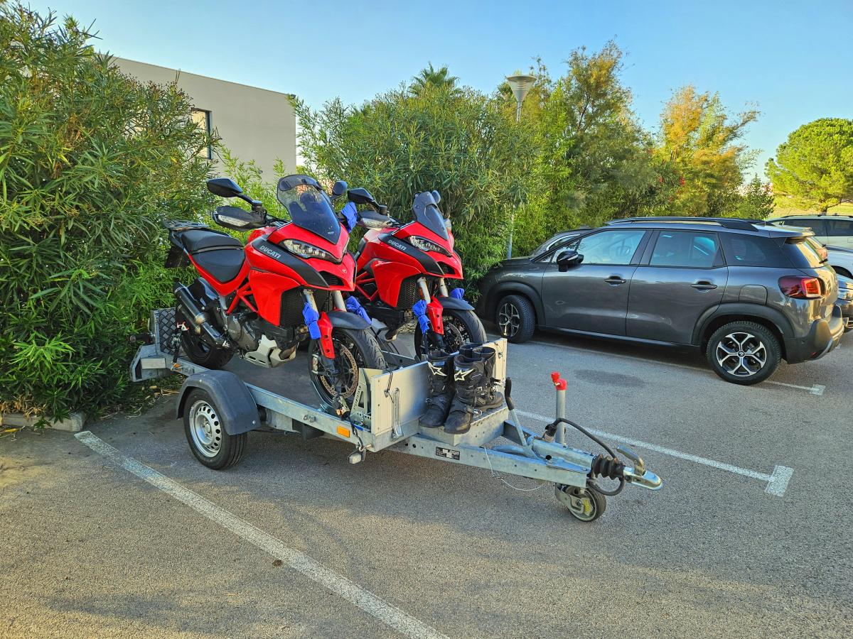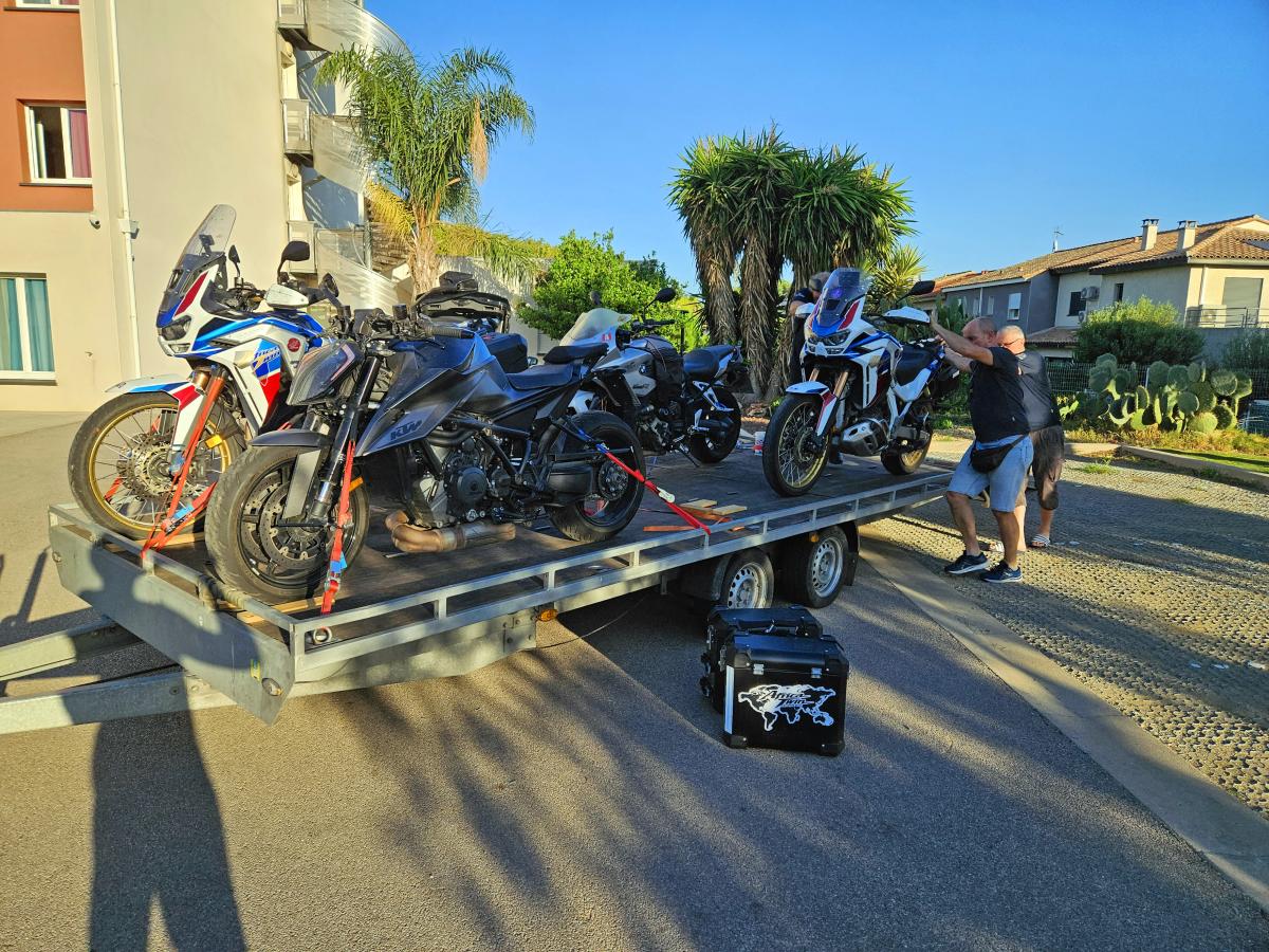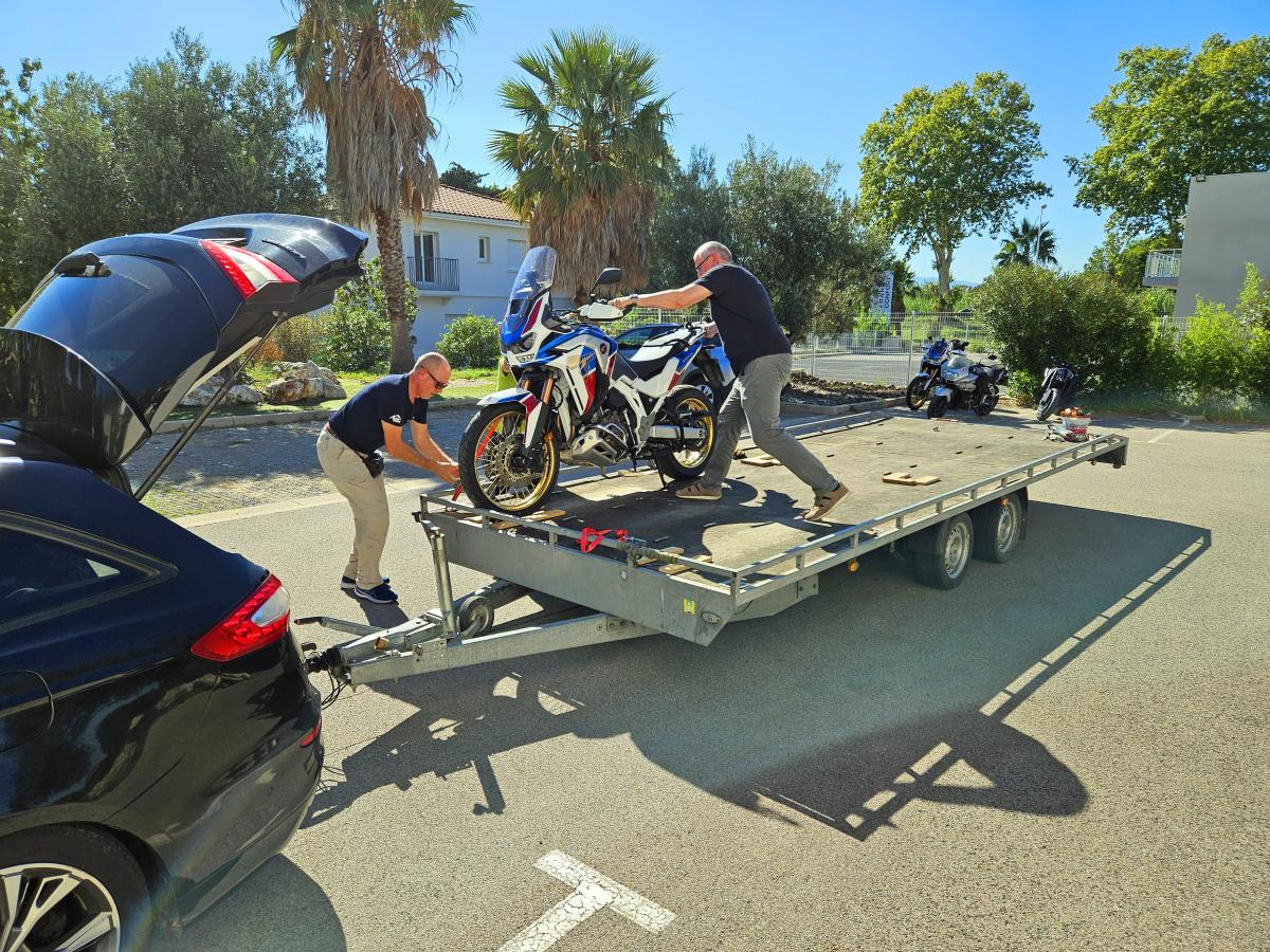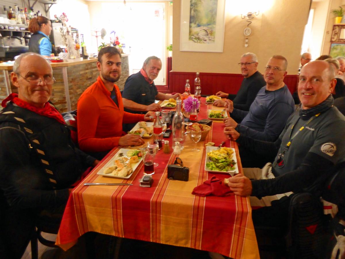 The next day we move on to Beat, where Klaus also joins us. Their bikes go on the trailer and then we go to the French Vercors to Gresse-en-Vercors to the hotel Le Châlet. There we meet Wolfgang as well. The next day we continue to Perpignan to the meeting point.