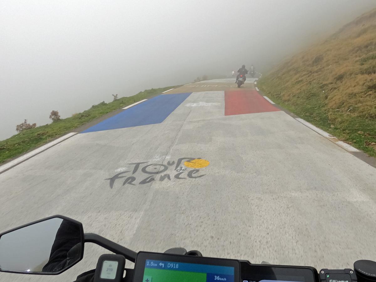 In France it is overcast and on the Col du Tourmalet and the Col d'Aubisque it is foggy.
