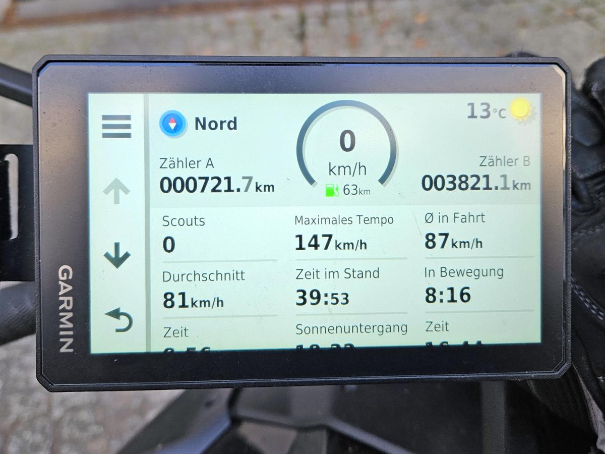 In the end, I did 721 kilometers on the motorcycle that day and a total of 3,821 kilometers on 8 motorcycle riding days.