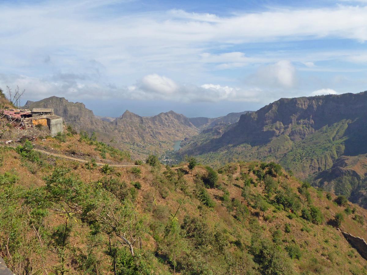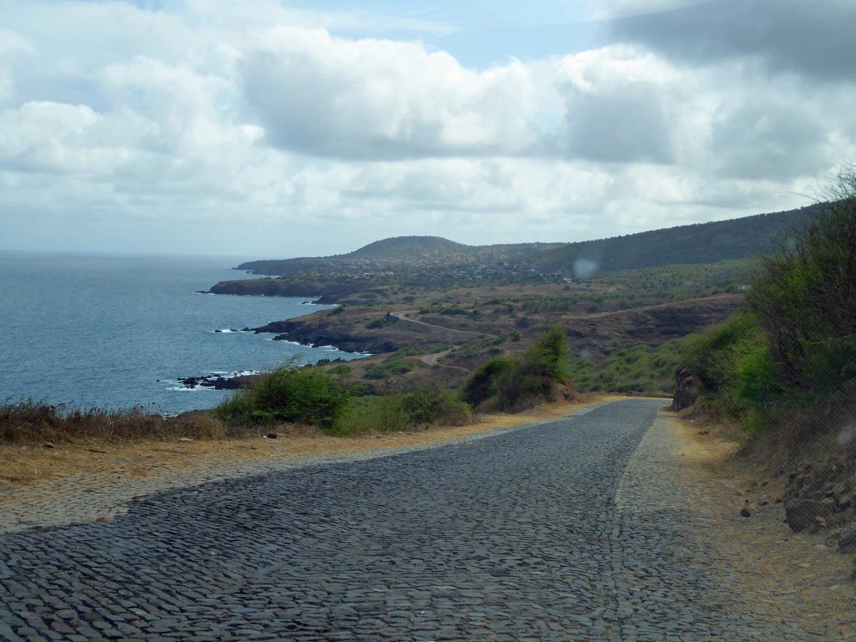 The island of Santiago with the capital of Cape Verde, Praia, turns out to be a beautiful tropical island to the west of Senegal in Africa. The constant sea breeze makes the temperatures between 77 and 86 degrees Fahrenheit very bearable and the strong sun is muted by lots of clouds. Very pleasant.