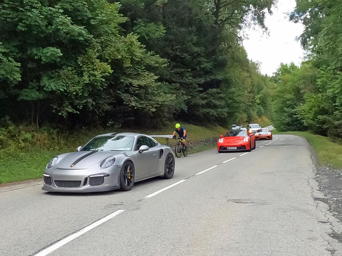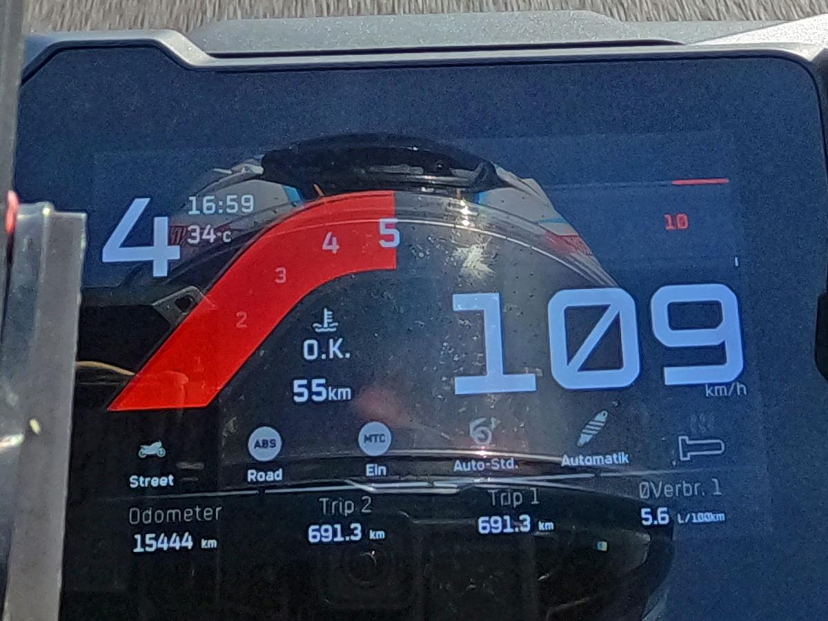 A small moment of shock on the Colle San Carlo in Italy. I overlooked a patch of gravel and skidded really badly. It sounds strange, but I got saved by my speed, which gets me over the slippery patch quickly and the bike is able to stabilize itself without any problems.