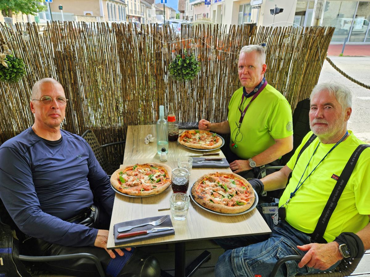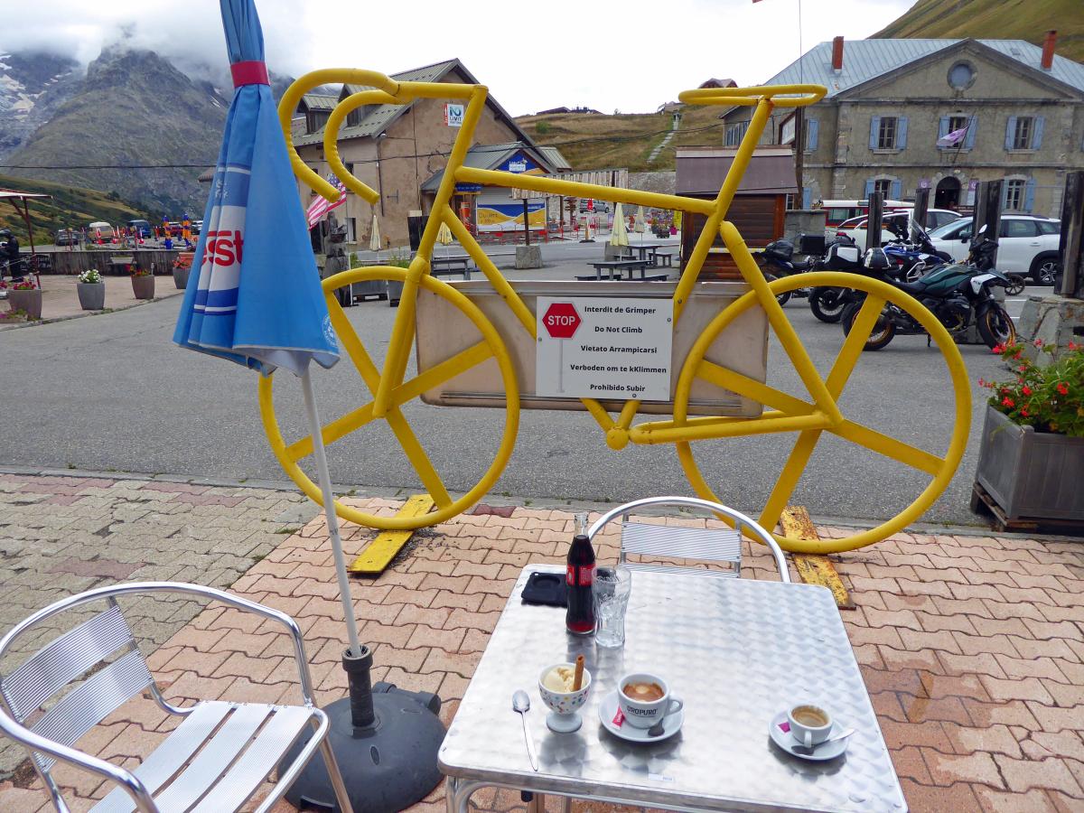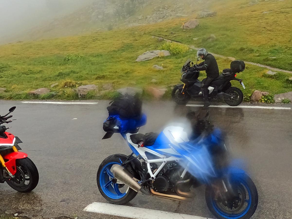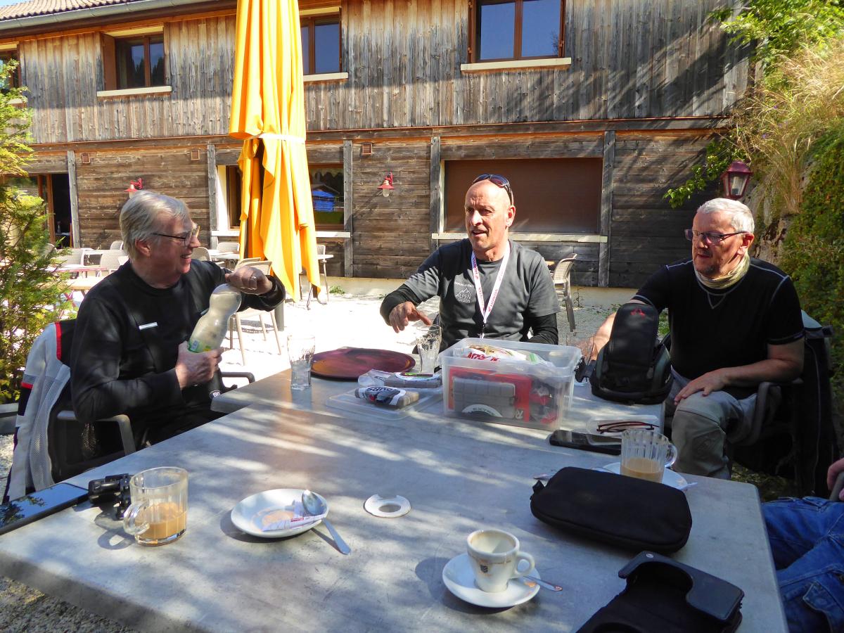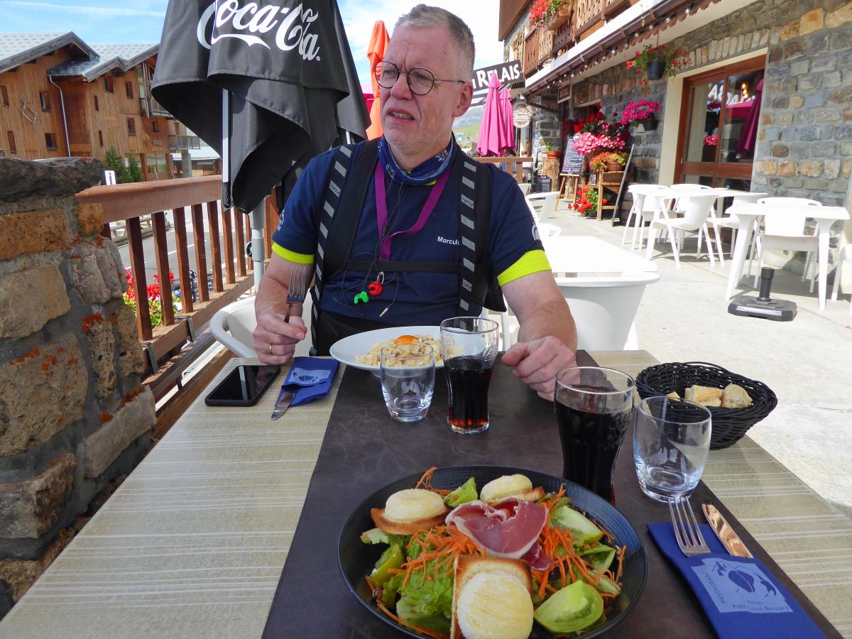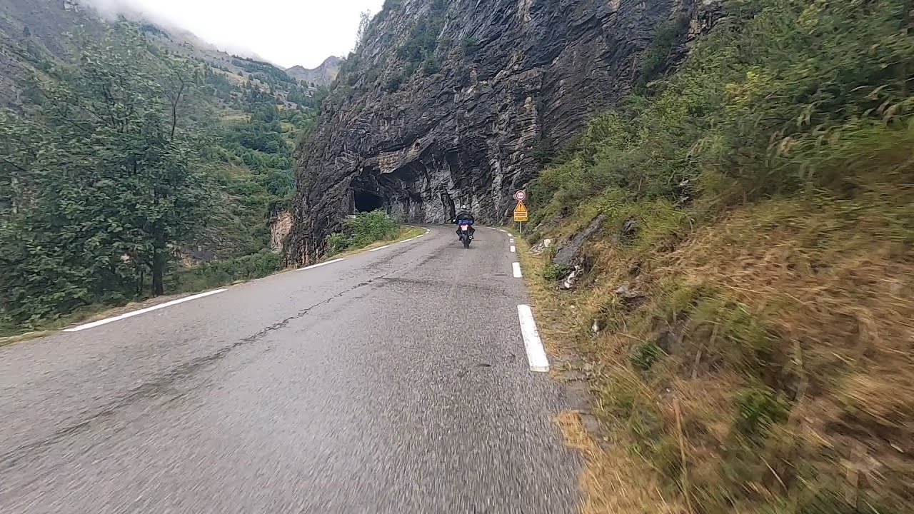 There were heavy thunderstorms with heavy rain during the night. The rain eased a little in the morning, but the roads were still wet. A mudslide on the Col des Champs blocked our way. So we had to head back south and then over the Col de Colle-de-Saint-Michel and through the Gorges de Daluis towards Valberg and then over the Col de la Cayolle. Everything was wet and then rain, fog, cold and wet roads on the Cayolle. Things could be better. Fortunately, another mudslide before the Col de Var had already been half cleared and we were able to pass. After lunch it dried up and so we were able to ride the Col d'Izoard and Col du Galibier on dry roads. All in all very exhausting.