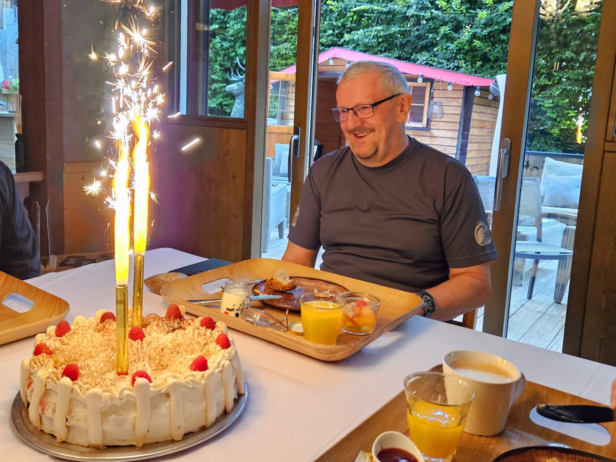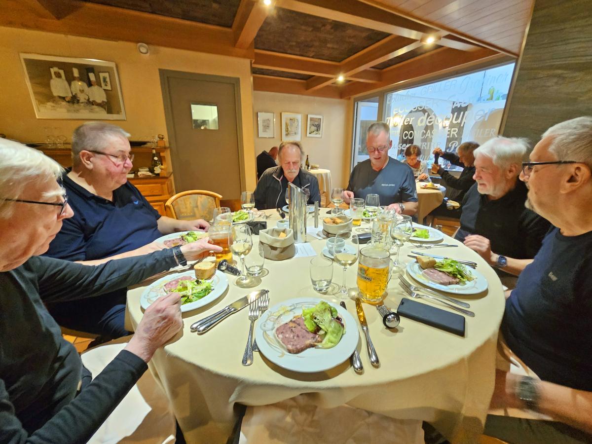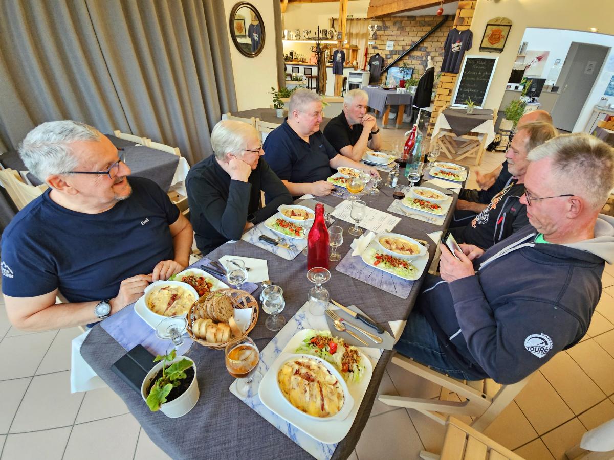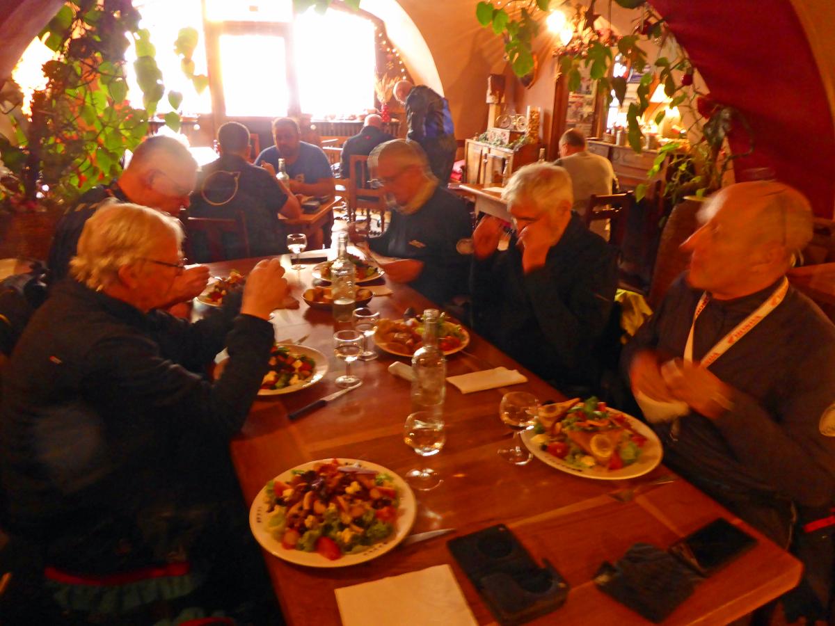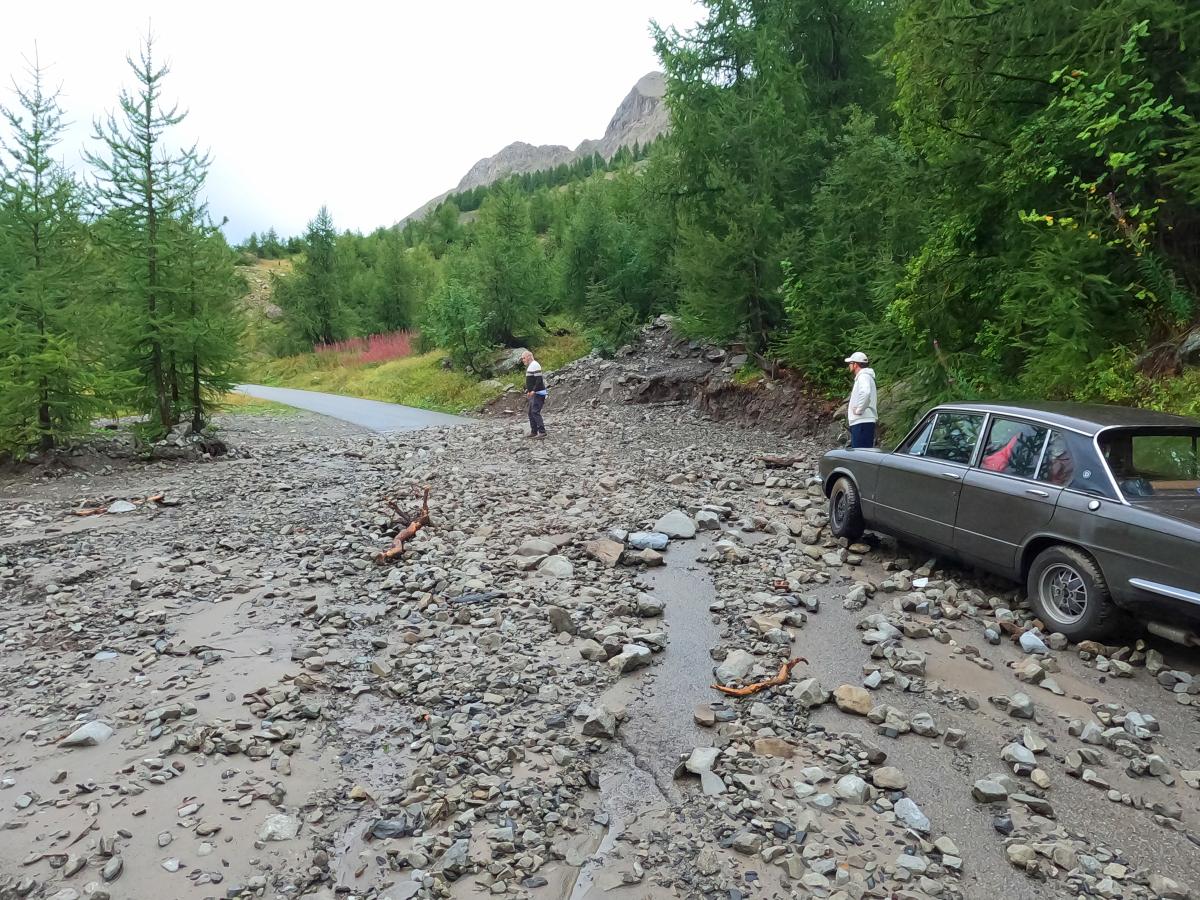 There were heavy thunderstorms with heavy rain during the night. The rain eased a little in the morning, but the roads were still wet. A mudslide on the Col des Champs blocked our way. So we had to head back south and then over the Col de Colle-de-Saint-Michel and through the Gorges de Daluis towards Valberg and then over the Col de la Cayolle. Everything was wet and then rain, fog, cold and wet roads on the Cayolle. Things could be better. Fortunately, another mudslide before the Col de Var had already been half cleared and we were able to pass. After lunch it dried up and so we were able to ride the Col d'Izoard and Col du Galibier on dry roads. All in all very exhausting.