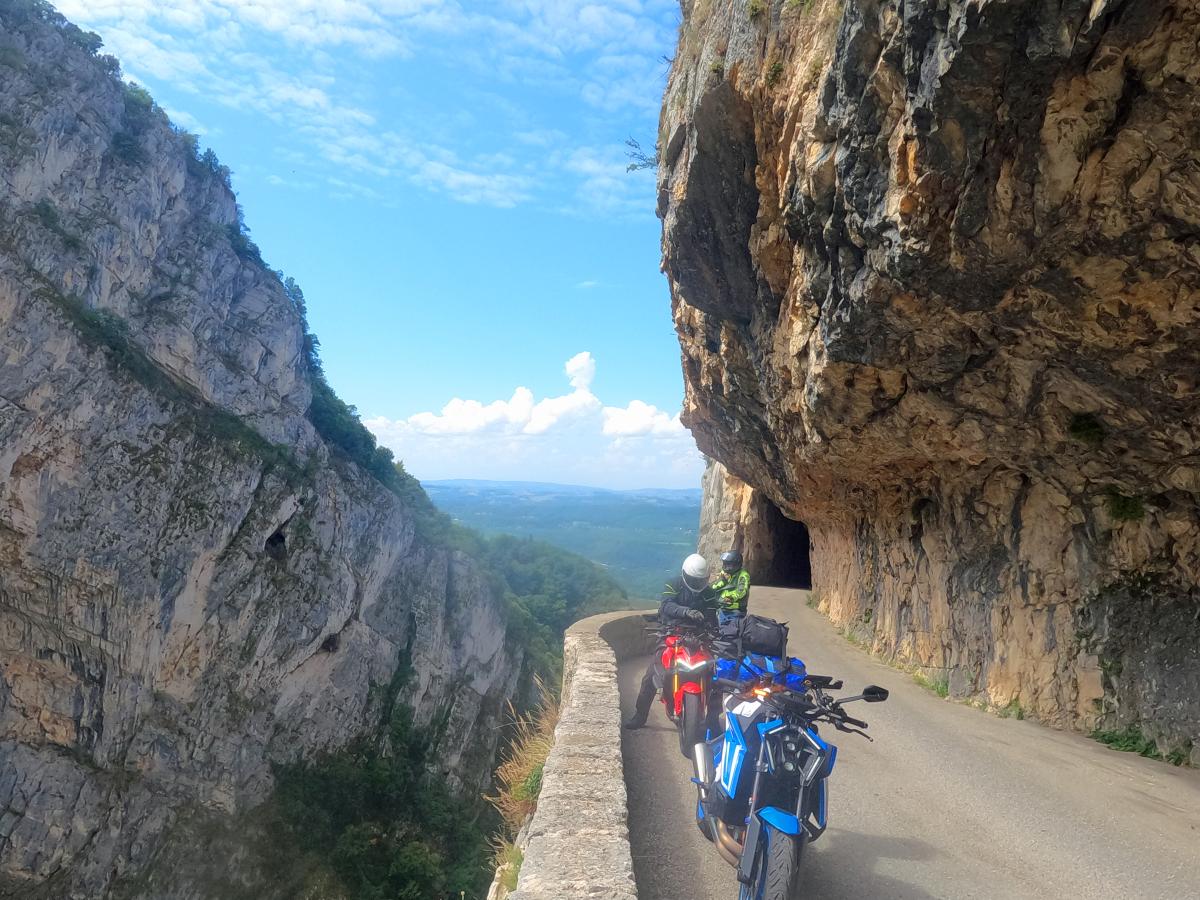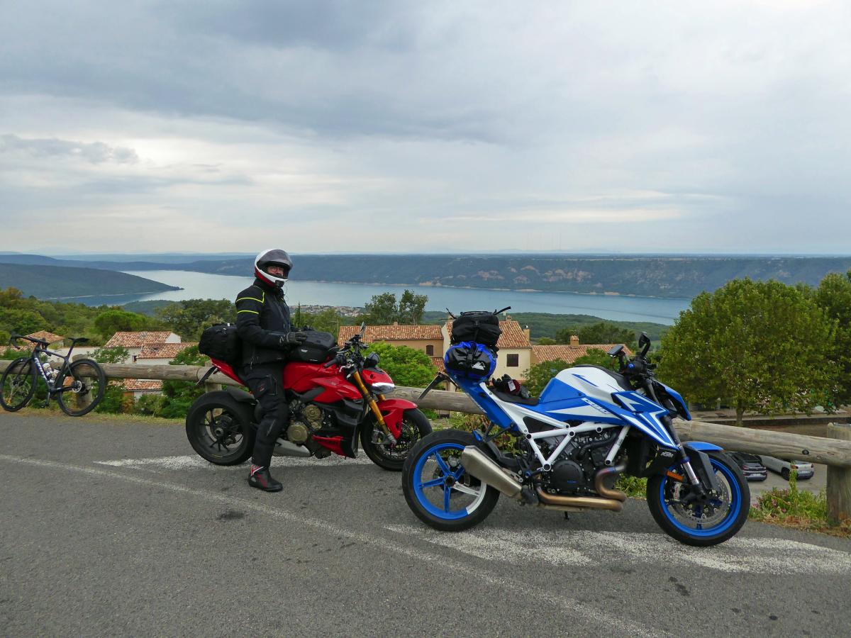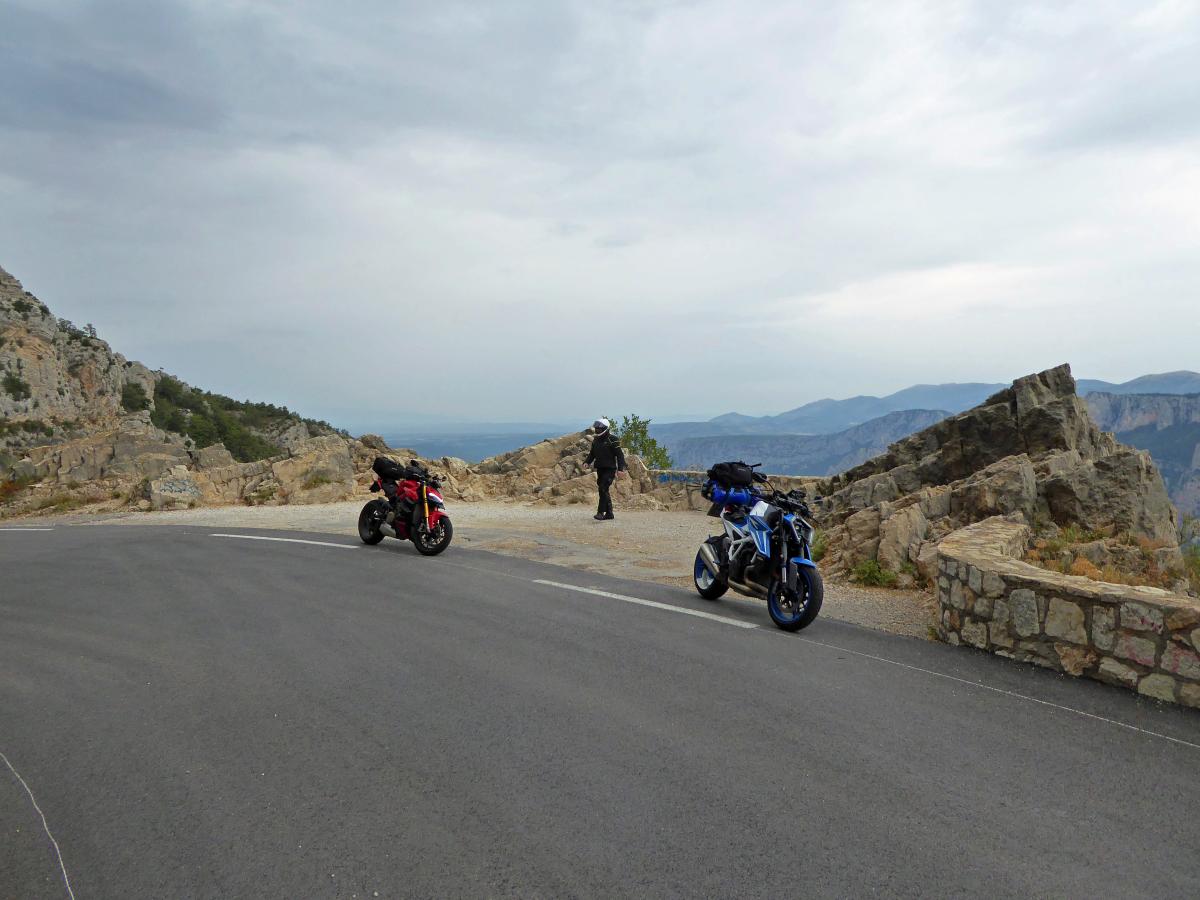 We continue south. The main destination is Mont Ventoux. But there are other highlights on this day. On Col de Grimone, the Glandage section was closed. The detour via small mountain roads opened up incredibly impressive views of Gorges des Gâts. And then there was the D994/D94 between Serres and Curnier. 50 kilometers of very well developed road with numerous bends and great scenery and very fast to drive. The Streetfighter and Superduke lived up to their reputation as hooligan bikes.