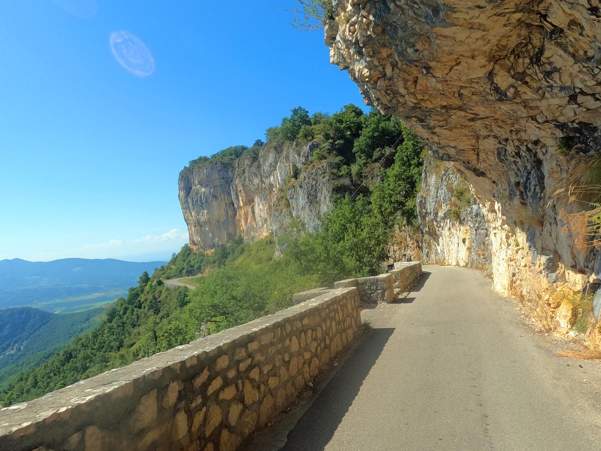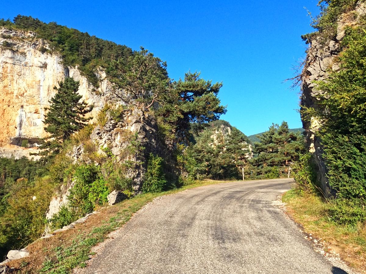 It rained during the night and the roads are still damp in the morning. We drive through the Chartreuse into the Vercors. There are lots of rocks, deep gorges and rugged mountains. A very beautiful area.