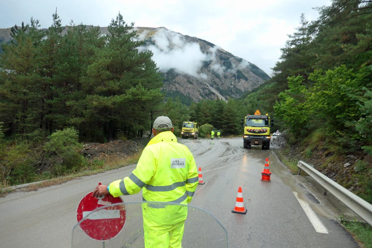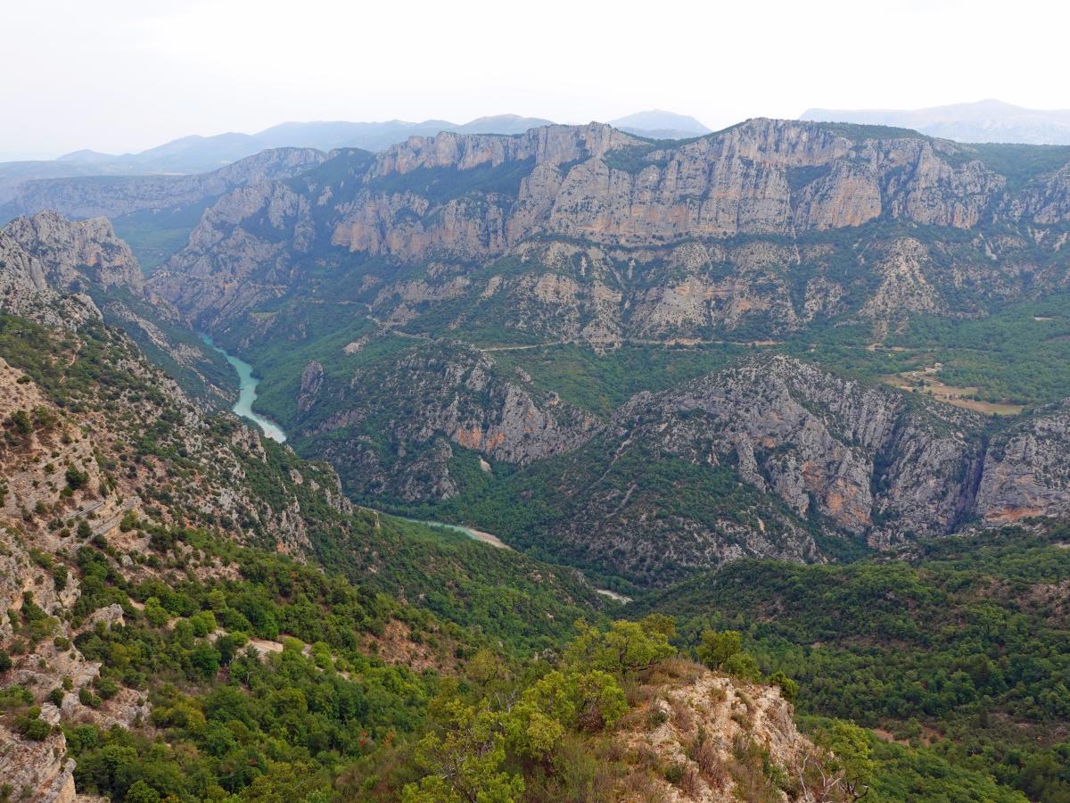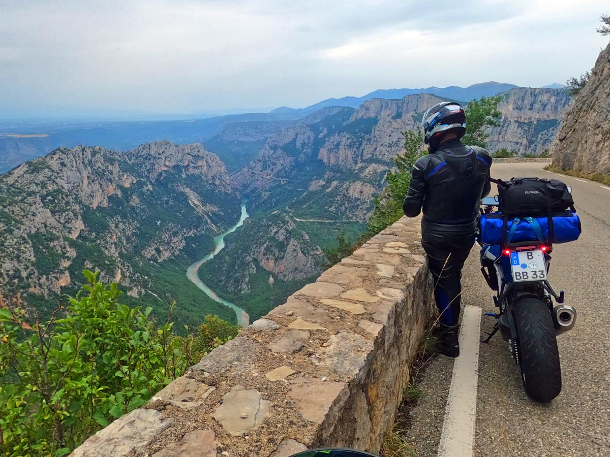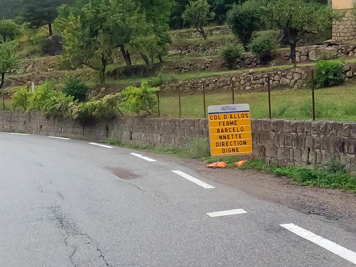 We pass the southernmost point of the tour. Then we head north again. Today's main destination is the Grand Canyon du Verdon. The weather is moderate. After morning fog and a few raindrops, it was gray all day. After midday we had a few kilometers of rain north of Castellane. Nevertheless, the canyon and the reservoir are quite impressive. Only the blue of the water was missing. You need sunshine for that. We reach Allos on the southern ramp of the Col d'Allos. Unfortunately, the pass is closed. We were aware of this.